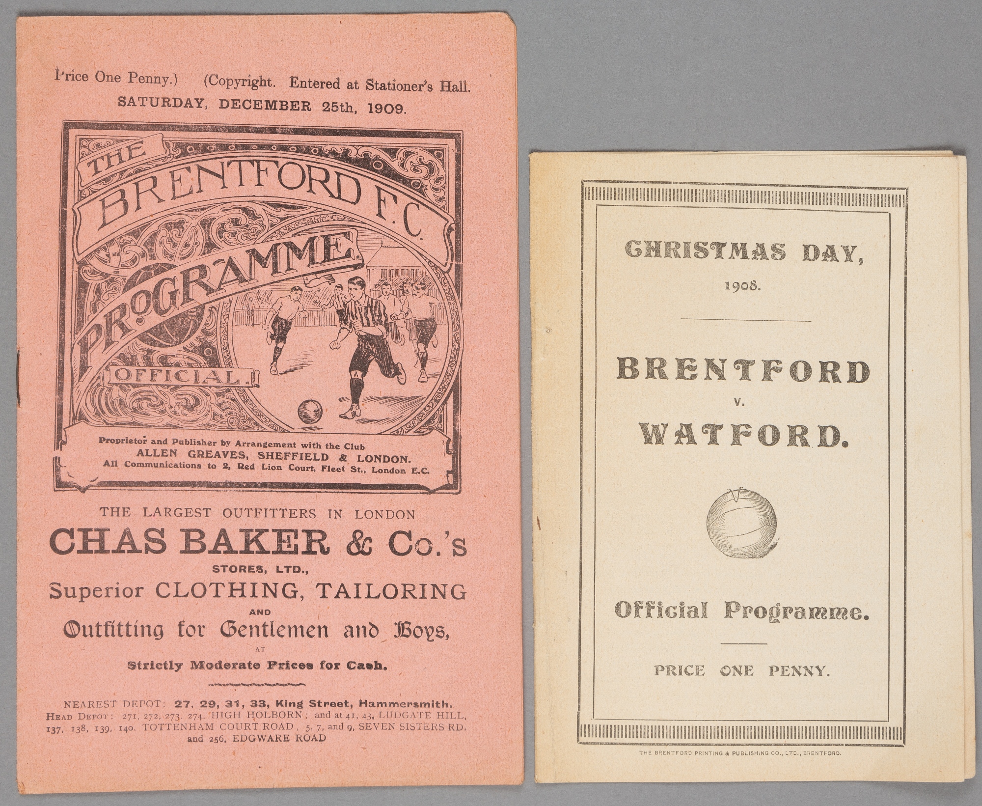 Two Brentford home programmes played on Christmas Day, both Southern F.L. Division One fixtures, the first v Watford in 1908 being a 'special small n