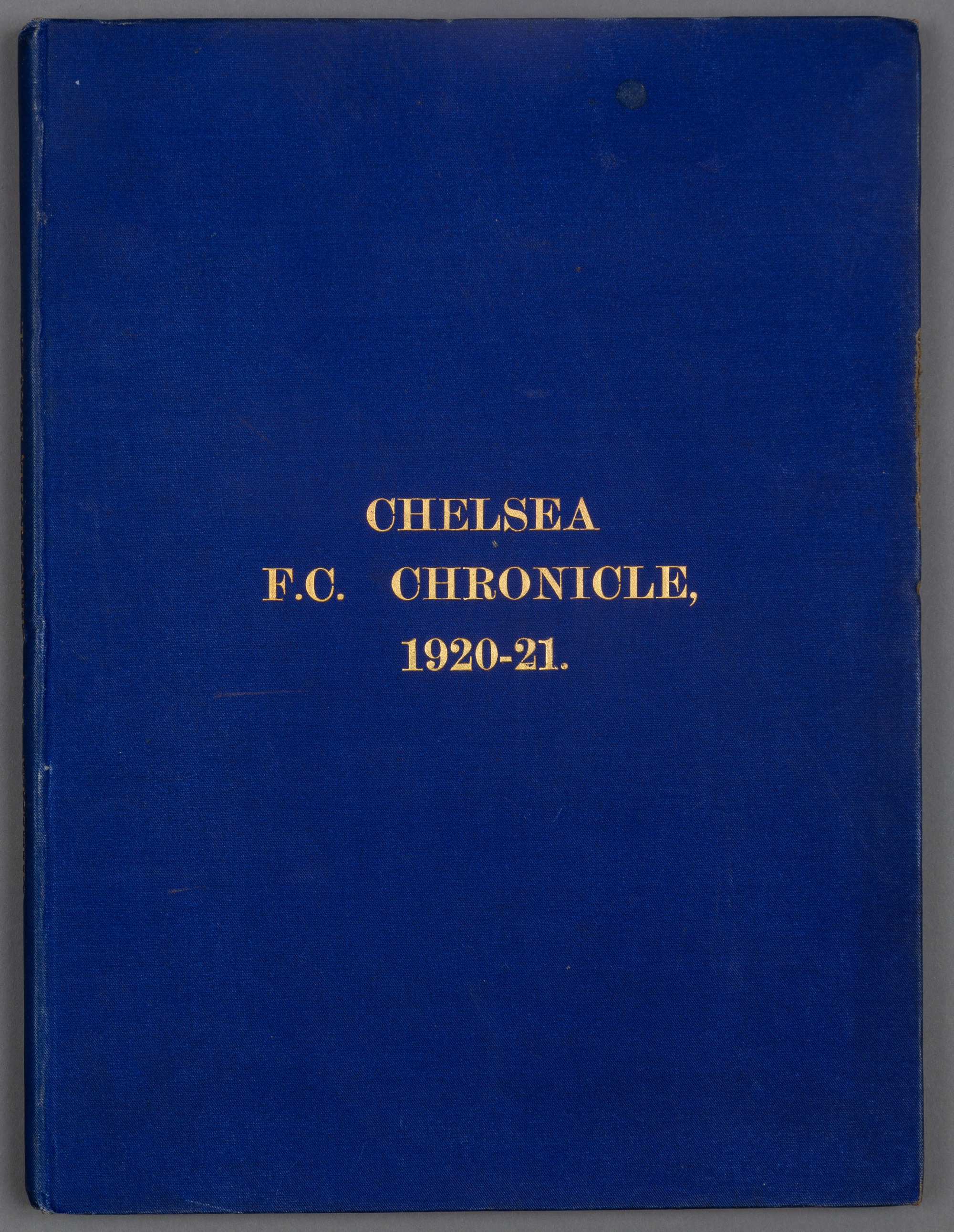 Bound volume of Chelsea home programmes season 1920-21, comprising first team (Football League Div 1) and reserves (London Football Combination), the volume including a number of photographic inserts in a series entitled ‘Chelsea Celebrities’, No. 1 has insert of the club’s distinguished War hero Harry Wilding Military Medal, No. 2 has insert of Tom Logan, No. 3 has insert of Robert McNeil, No. 6 has insert of William Dickie, London Cup 1st Rd Chelsea v Ilford 11th Oct s/s, No. 9 has insert of Colin Hampton, No. 10 has insert of Fred Barrett, London Cup 2nd Rd v Clapton Orient 1st Nov s/s, No. 14 has insert of James Ferris, No. 16 has full page photographic insert featuring the visit to Stamford Bridge of HRH The Prince of Wales and HRH The Duke of York 16th Oct, No. 17 has insert of Jack Whitley, FA Cup 1st Rd replay v Reading 12th Jan plus second replay of this match 17th Jan, FA Cup 3rd Rd replay v Plymouth Argyle 24th Feb, blue cloth-covered boards, gilt titling, some scarring to cloth edge on front board, programme No. 1’s paper a little browned, otherwise very good throughout. Provenance: Jack Budd, Chelsea FC Club Director 1931 to 1952.