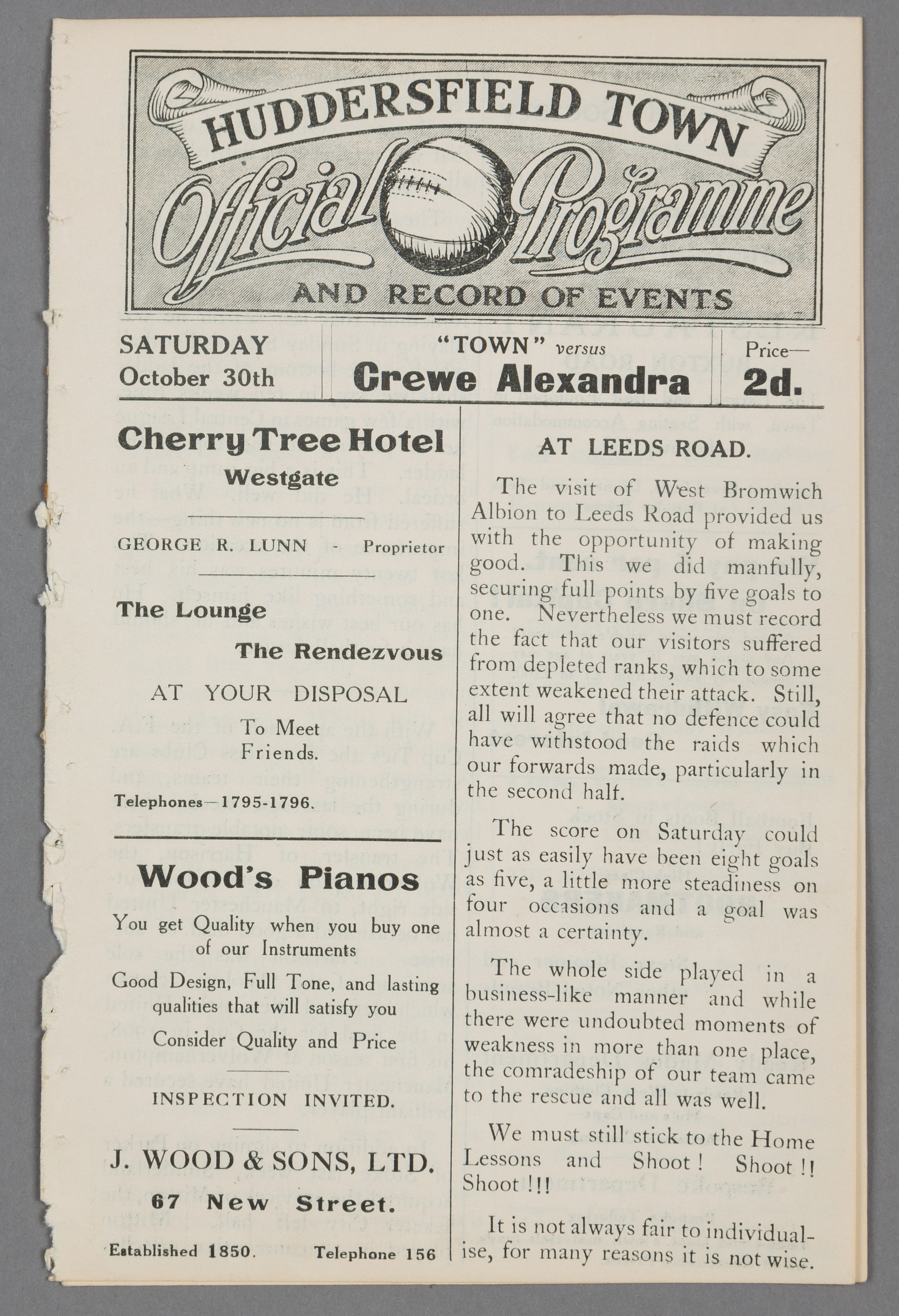 Crewe Alexandra v Rotherham 30th April 1938 FL Division Three (North) fixture; sold together with a Crewe reserves Central League fixture away at Hudd