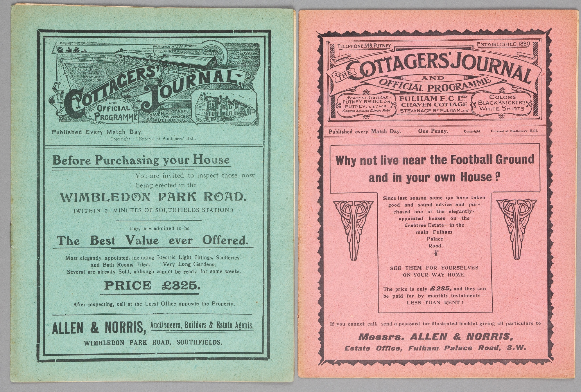 Two Fulham home programmes, F.L. Division Two fixtures v Glossop 29th April 1911 and Leeds City 7th September 1912, (2)