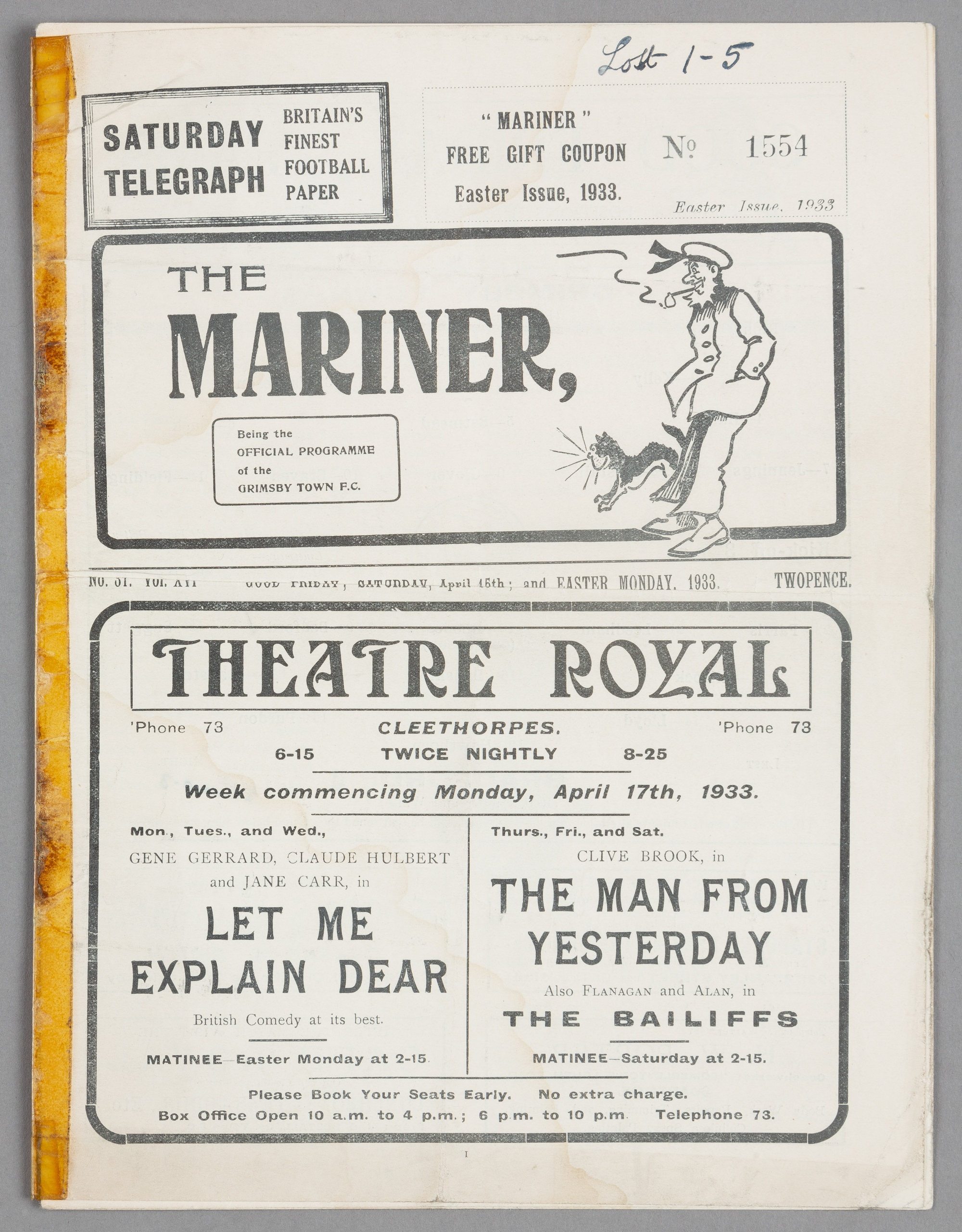 Grimsby Town v Bradford Park Avenue programme 14th April 1933, F.L. Division Two fixture, a combined programme also covering reserves v Wombwell; so