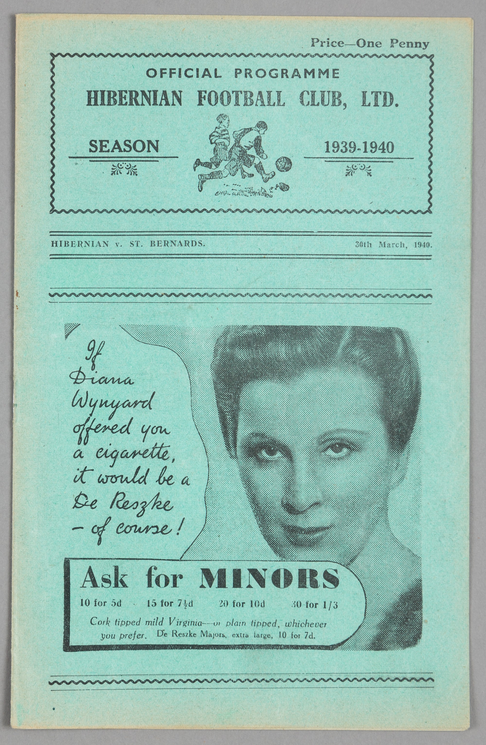 Hibernian v St Bernard's programme 30th March 1940, Scottish Wartime East and North Regional League fixture