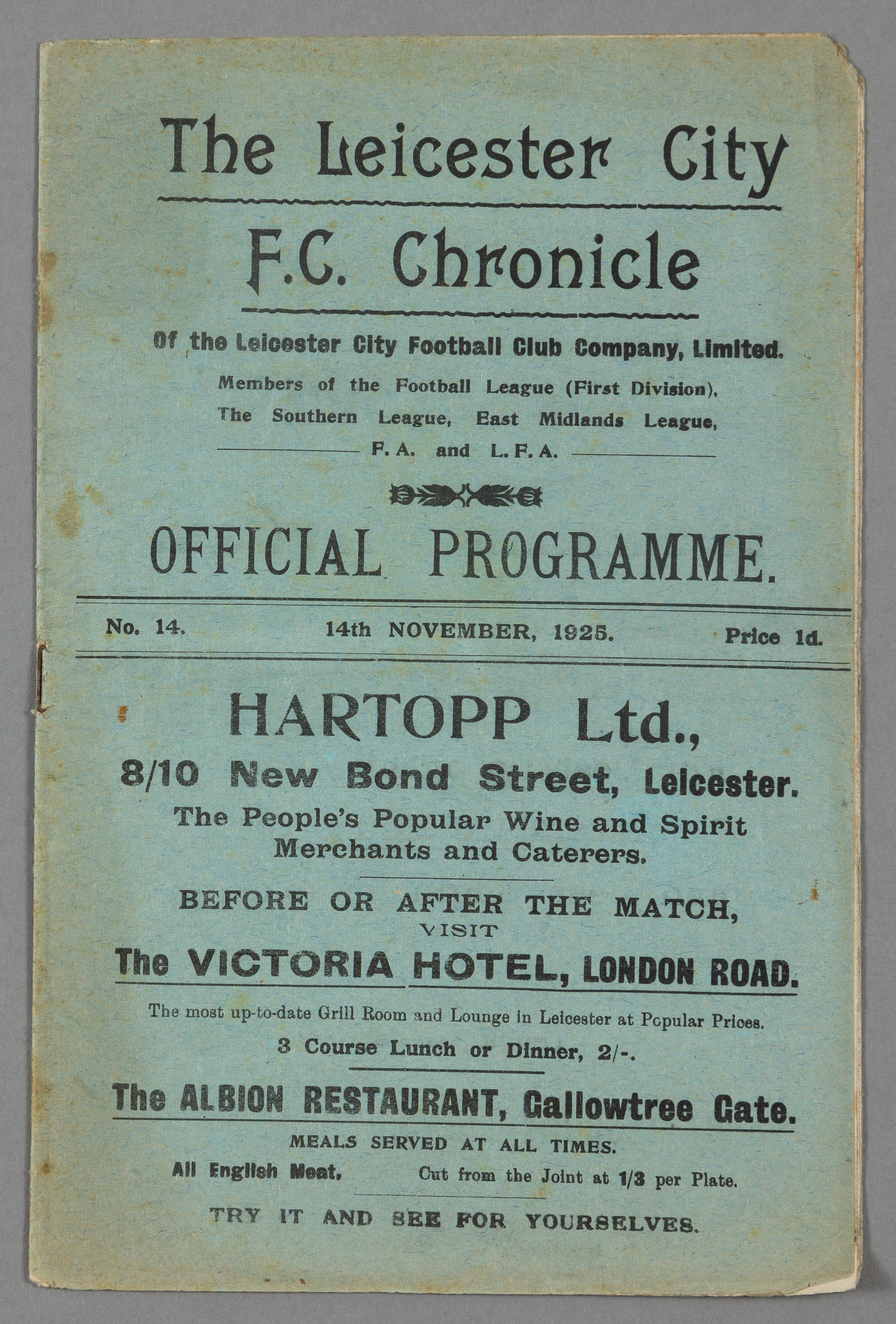 Leicester City v Sunderland programme 14th November 1925, F.L. Division One