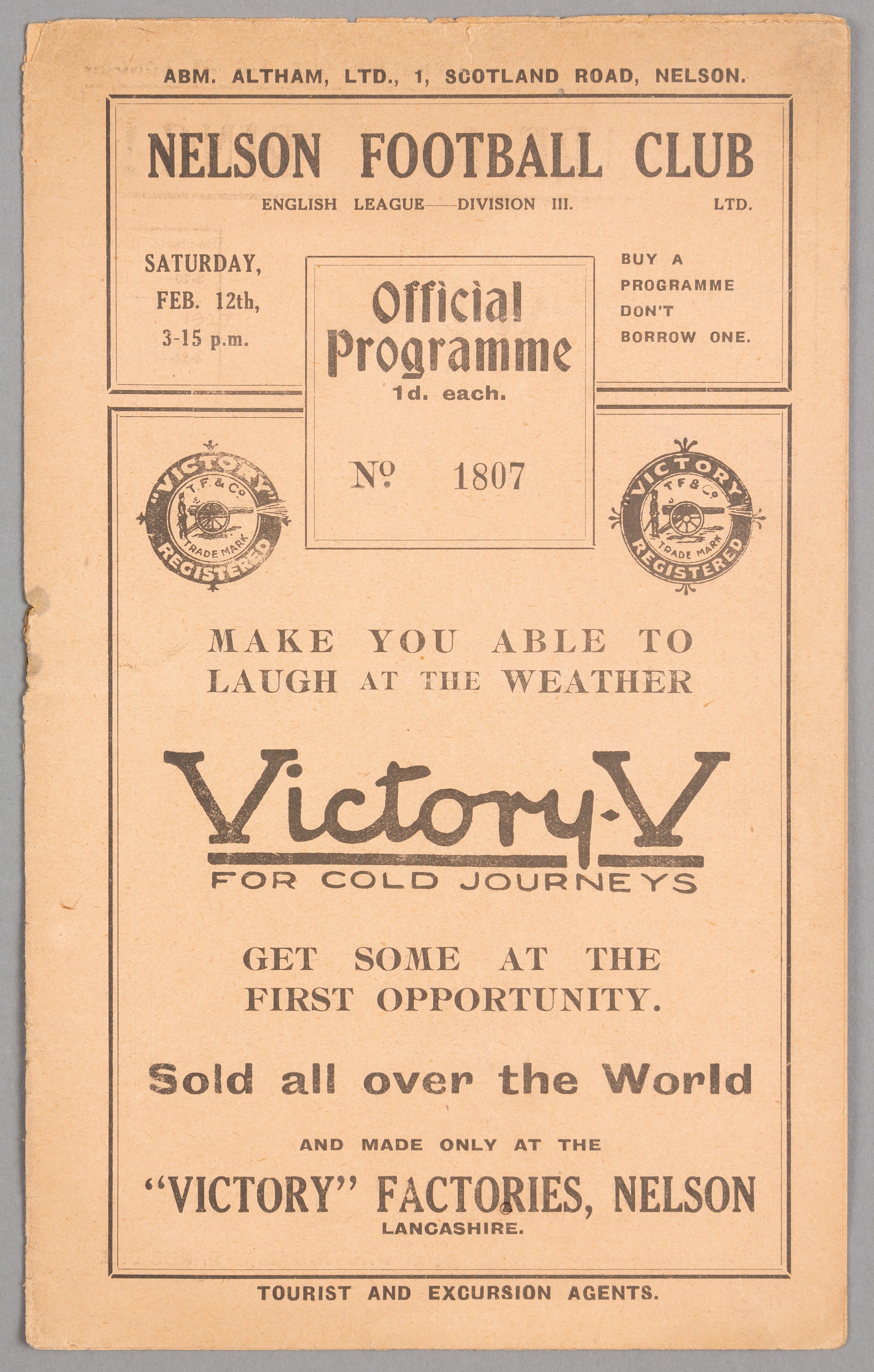 Nelson v Bradford Park Avenue programme 12th February 1927, F.L. Division Three North fixture