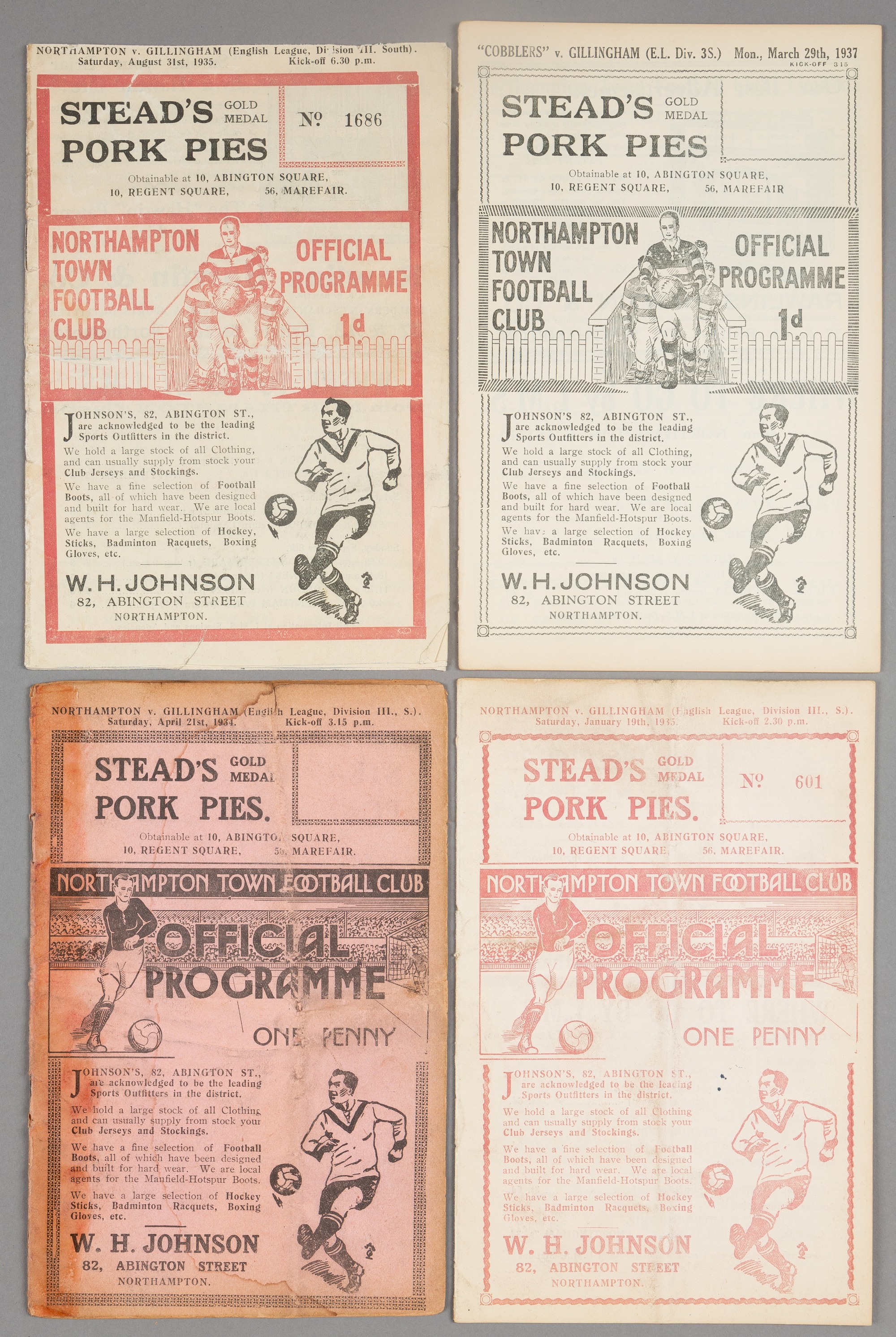 Four Northampton Town v Gillingham programmes, F.L. Division Three South fixtures, 21st April 1934, 19th January 1935, 31st August 1935 and 29th March 1937, (4)