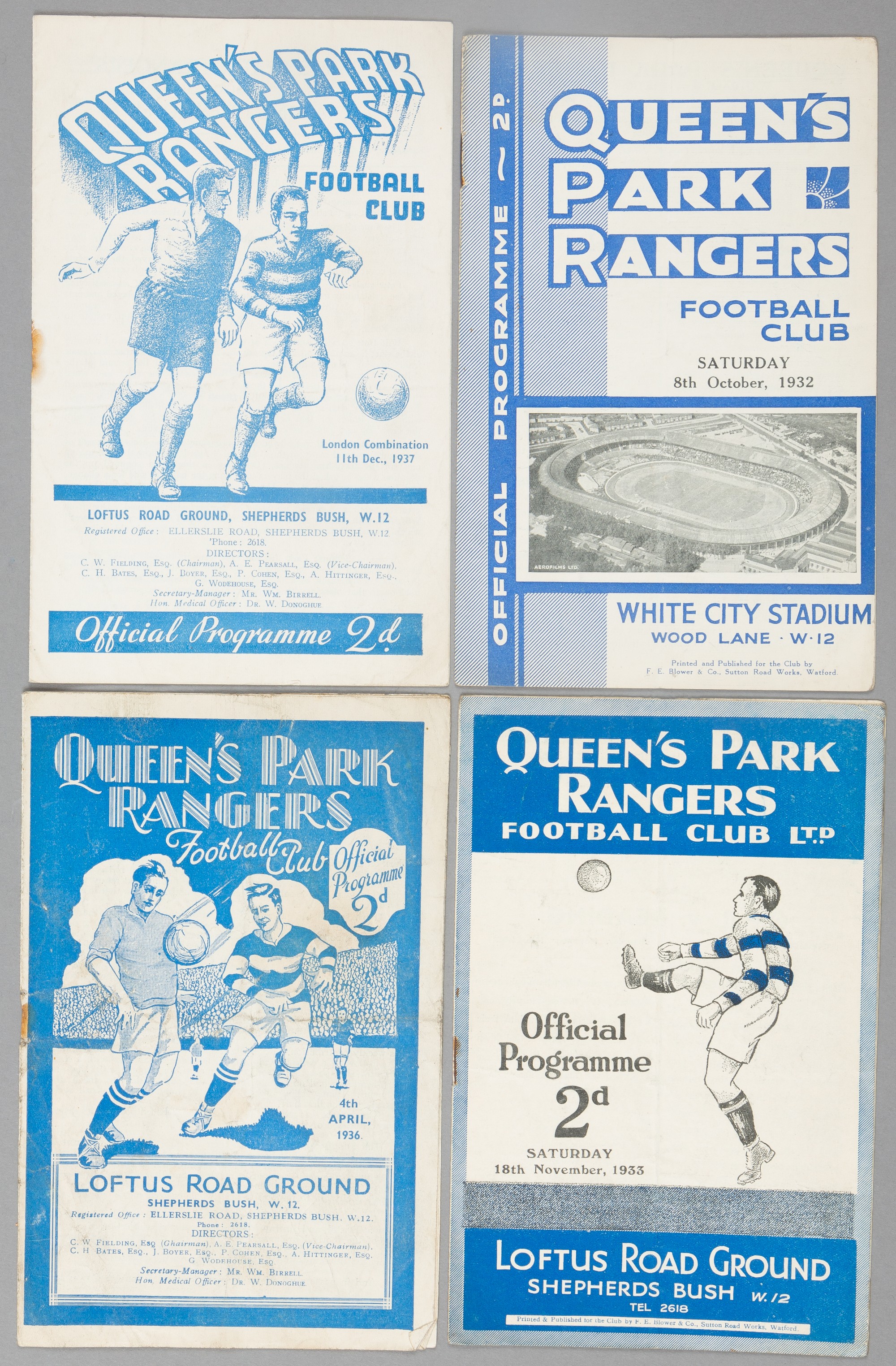 Four QPR v Reading programmes 1930s, F.L. Division Three fixtures 8th October 1932, 18th November 1933 & 4th April 1936; and a reserves, London Combination, 11th December 1937