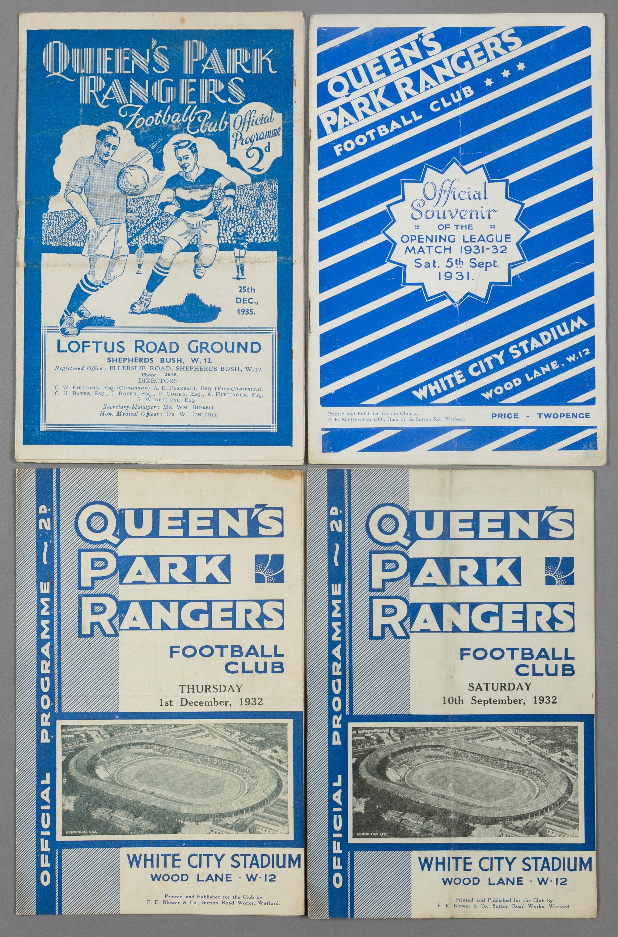 Four QPR 1930s home programmes, F.L. Division Three (South) fixtures unless otherwise stated v Bournemouth & Boscombe Athletic 5th September 1931, Crystal Palace 10th September 1932, Merthyr Town 1st December 1932 (FAC1 replay) and Watford 25th December 1935