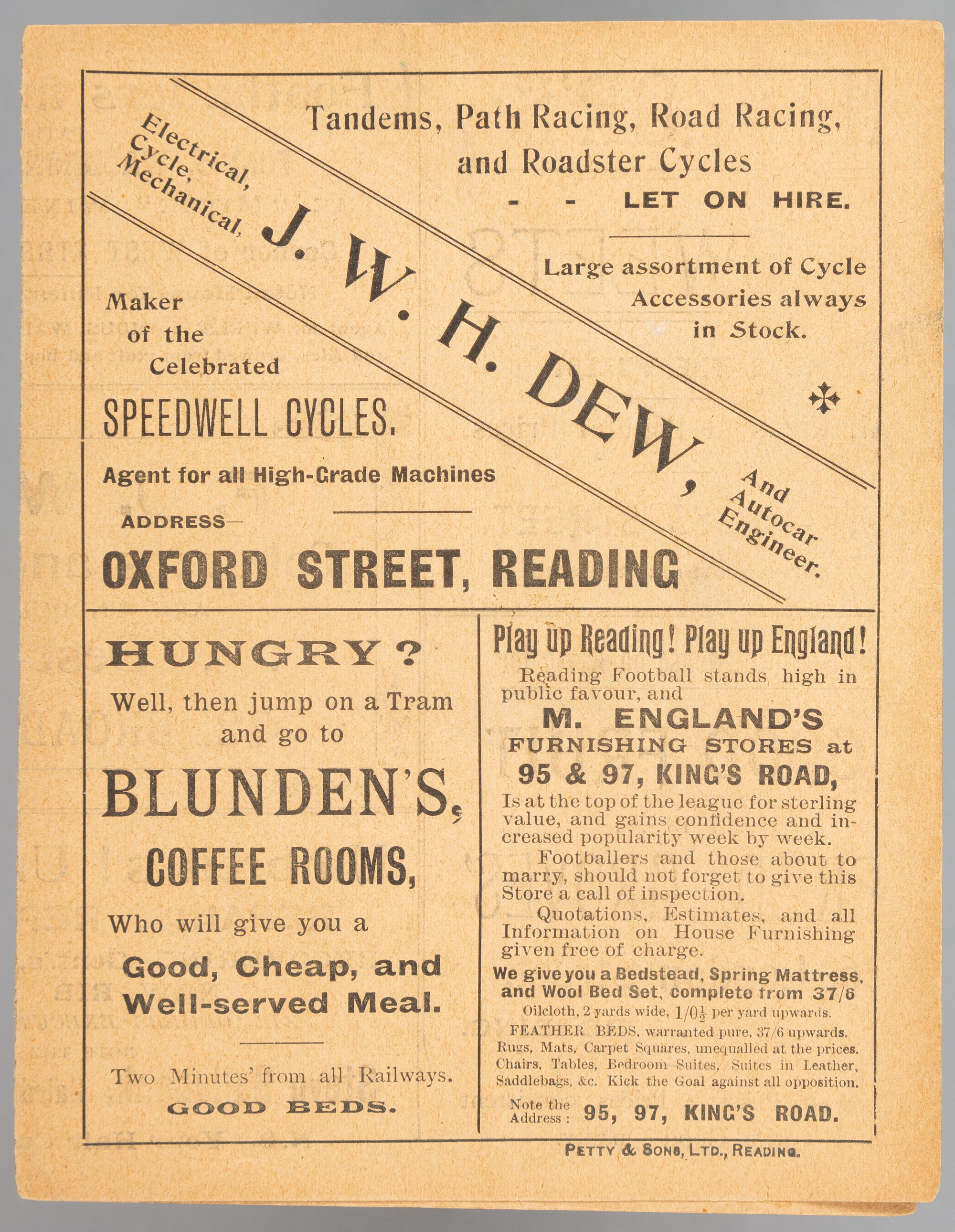 Reading v New Brompton programme 5th February 1898. Southern F.L. Division One fixture