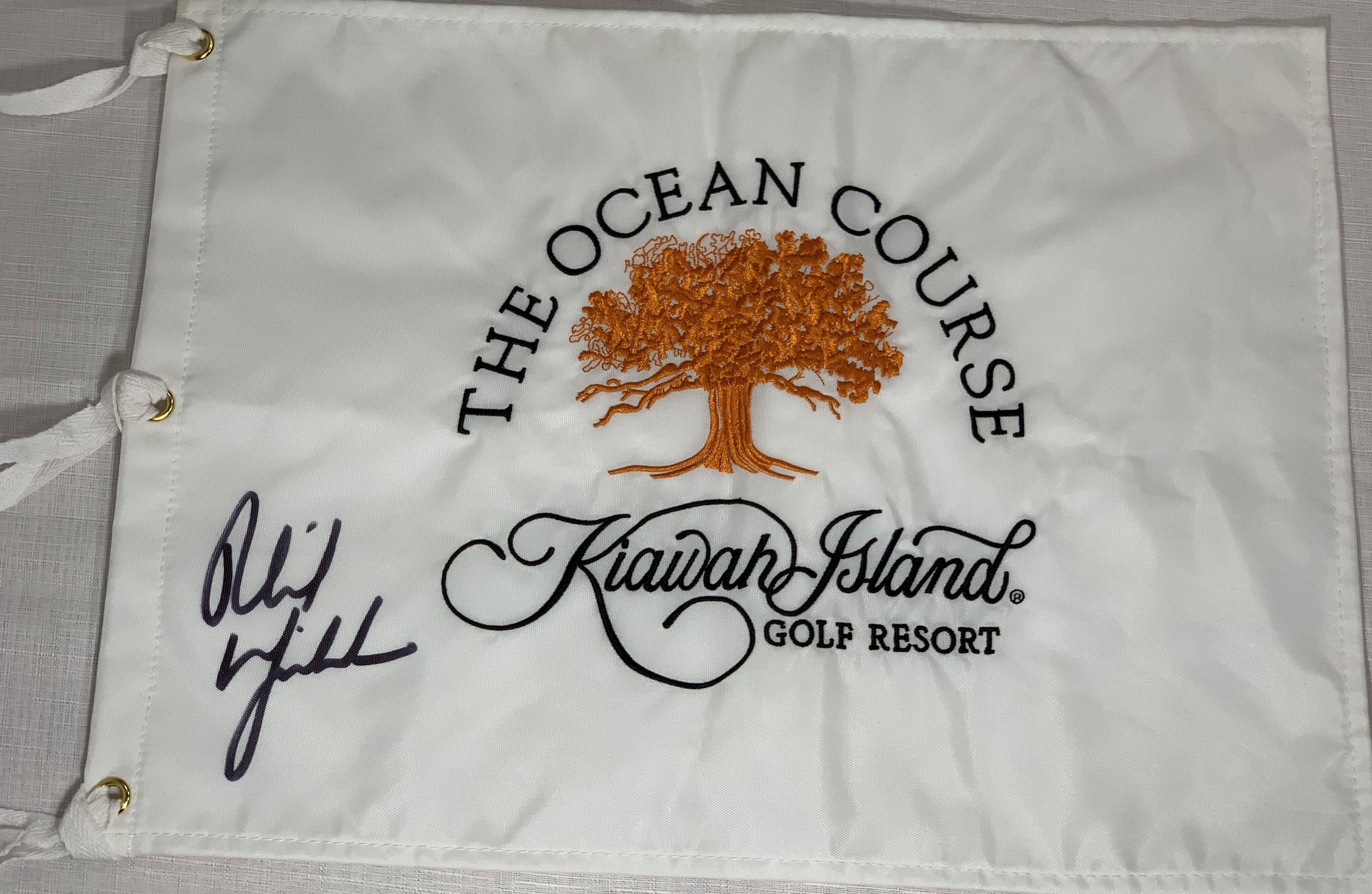 Phil Mickelson (USA) signed 2021 USPGA Flag, Kiawah Island, South Carolina, Signed in black permanent marker. Mickelson scored 282 (-6) to win the e