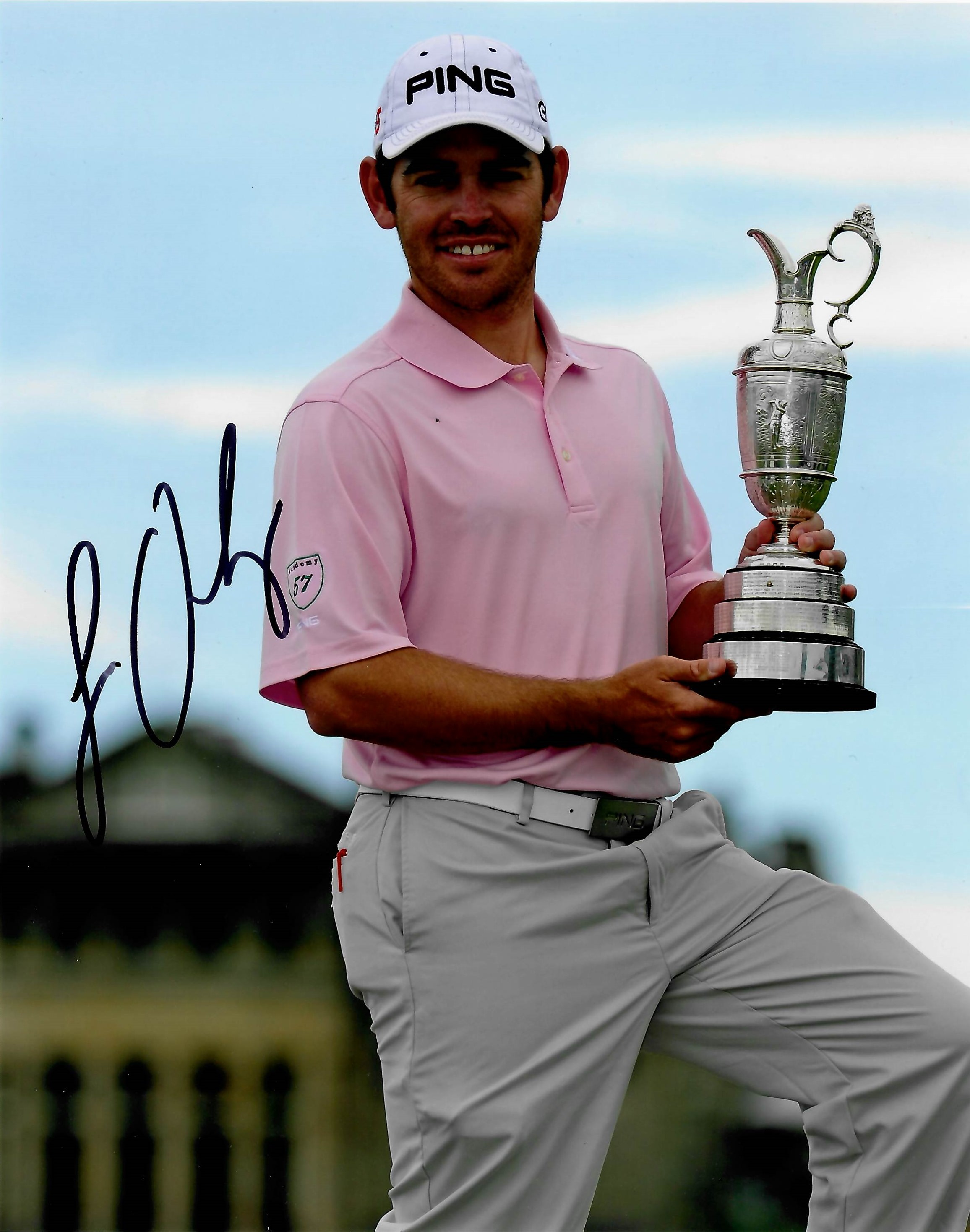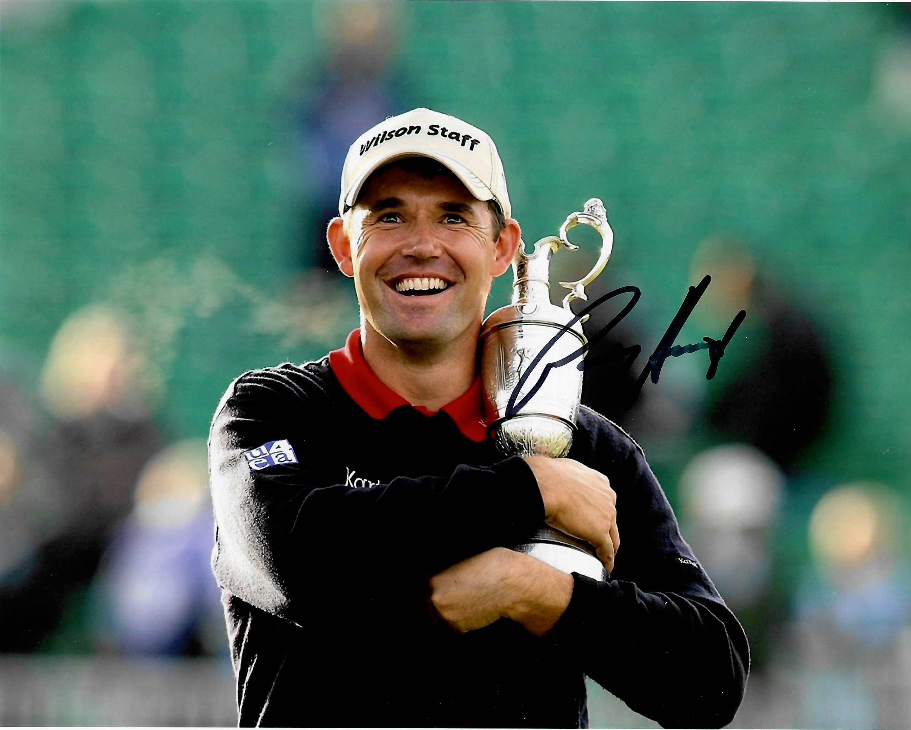 “The Open Championship” Collection of ten golf 8 by 10in. photographs signed by The Open winners, including Sandy Lyle (1985), Ian Baker-Finch (1991), Paul Lawry (1999), Pádraig Harrington (2008), Stewart Cink (2009), Louis Oosthuizen (2010), Ernie Els (2012), Henrik Stenson (2016), Francesco Molinari (2018), Shane Lowry (2019). Comes with COA and photo proof of signing. (11 items in total)