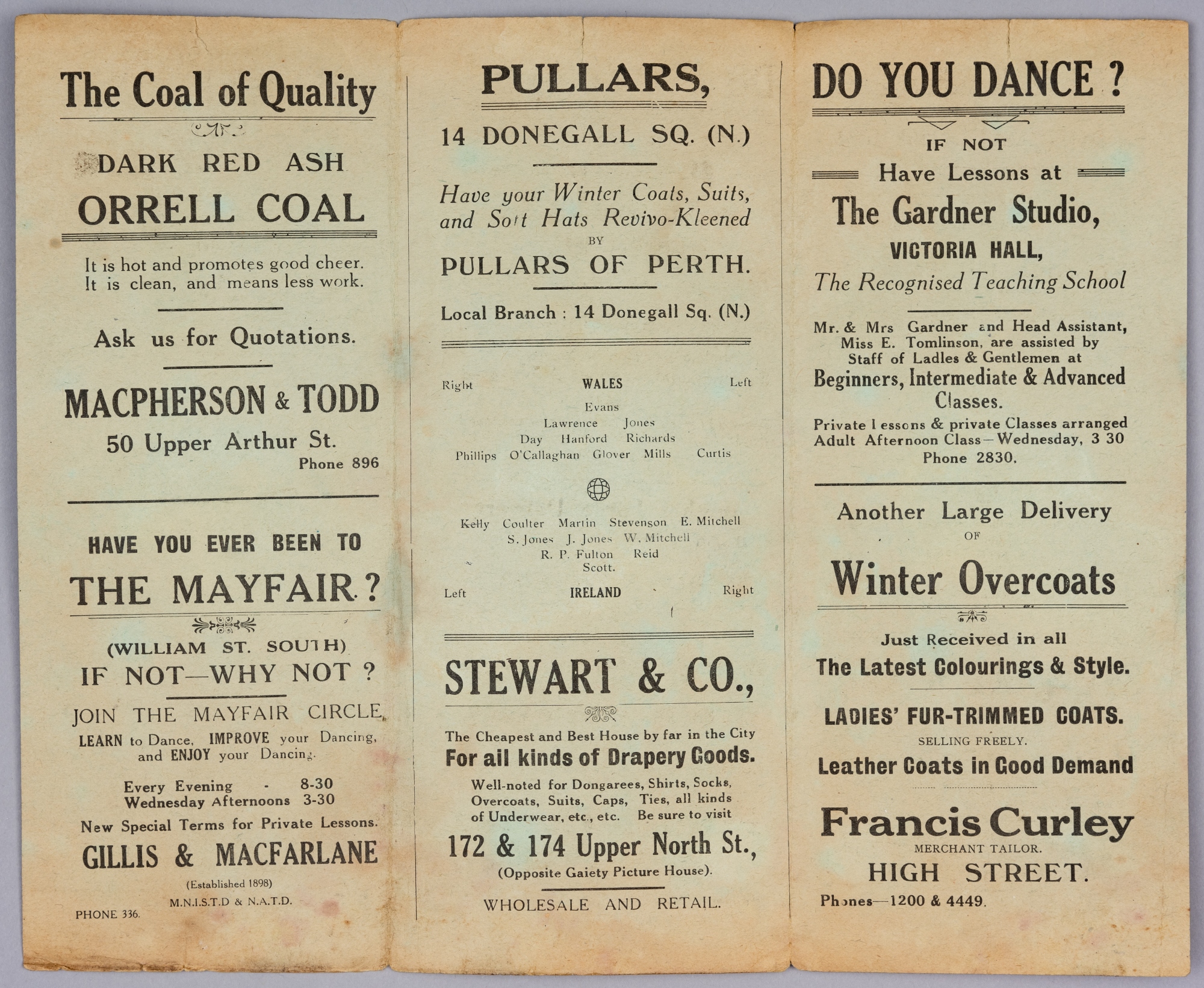 Northern Ireland v Wales International programme, played at Windsor Park, 4th November 1933, gatefold programme recorded as programme not known, this copy has no date or price but the team line-ups match the 1933 game, may be pirate or nearest to a match programme, unusual rare, faded, page edge discolouration, splits on page edge