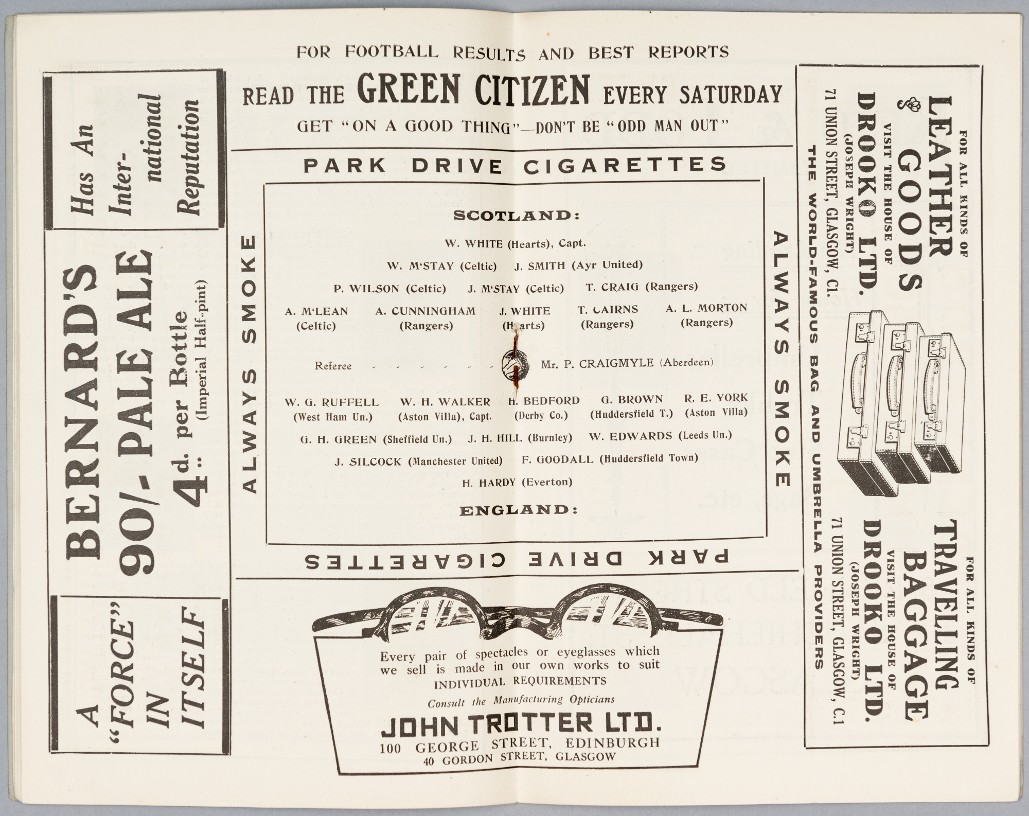 Scottish League v English League 1925-26 programme, played at Celtic Park, 13th March 1926, 38-page programme with printed cover, bears horizontal cr