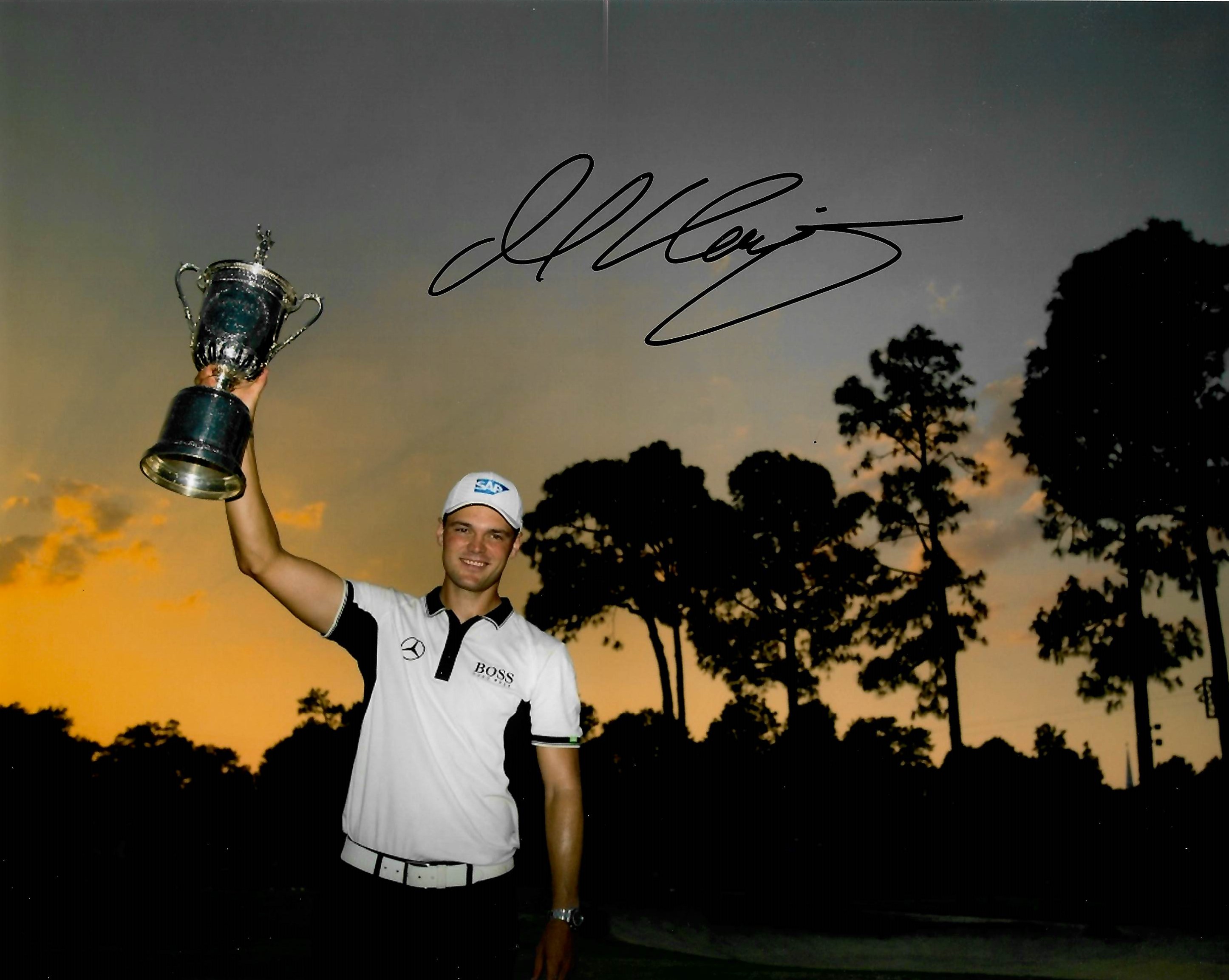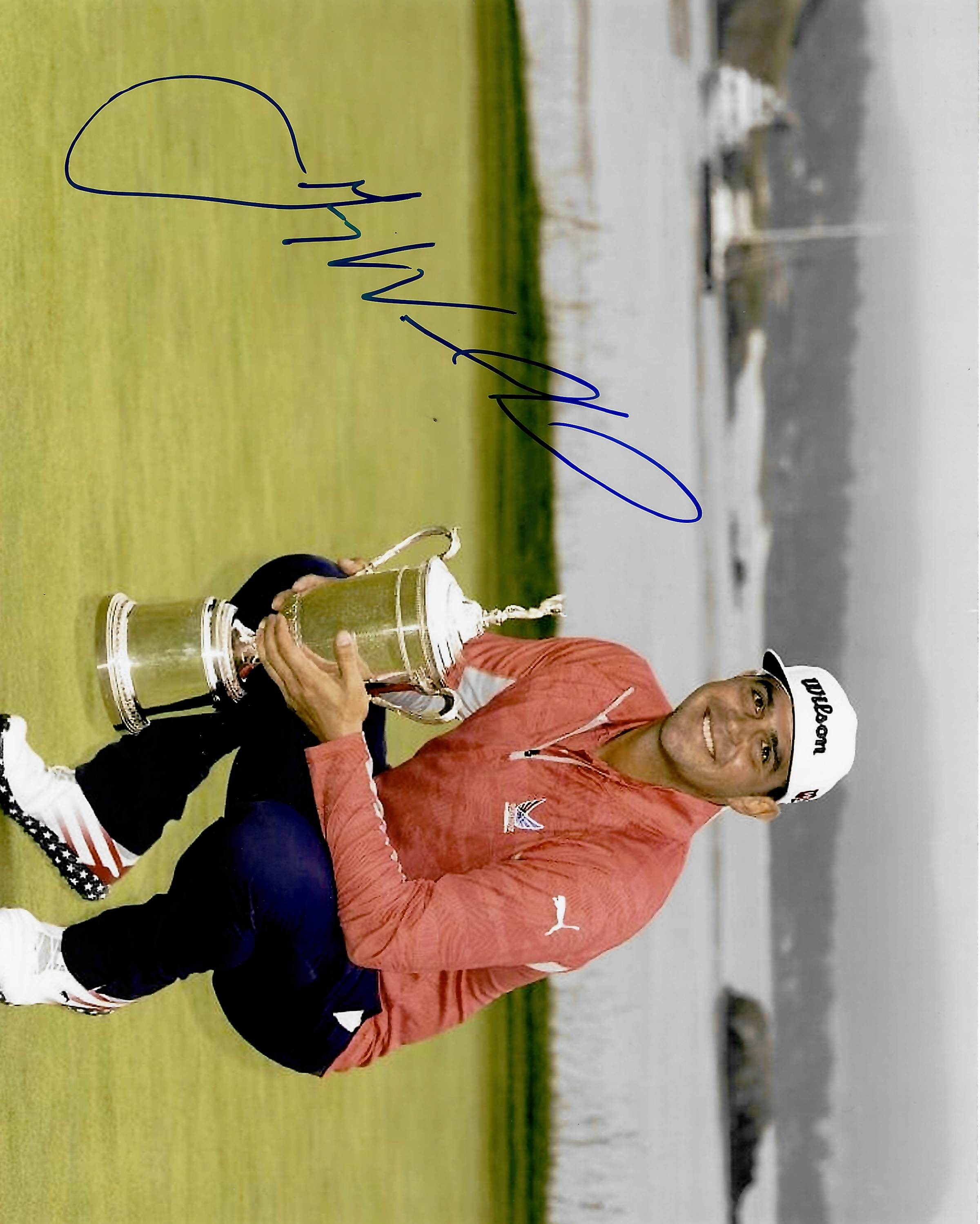 “US Open Champions Collection” of eight 8 by 12in. photographs signed by winners, including Curtis Strange (1988 & 1989), Geoff Ogilvy (2006), Graeme McDowell (2010), Justin Rose (2013), Martin Kaymer (2014), Gary Woodland (2019), Bryson De Chambeau (2020) and Jon Rahm (2021). Comes with COA and photo proof of players signing the photos. (9 items in total).