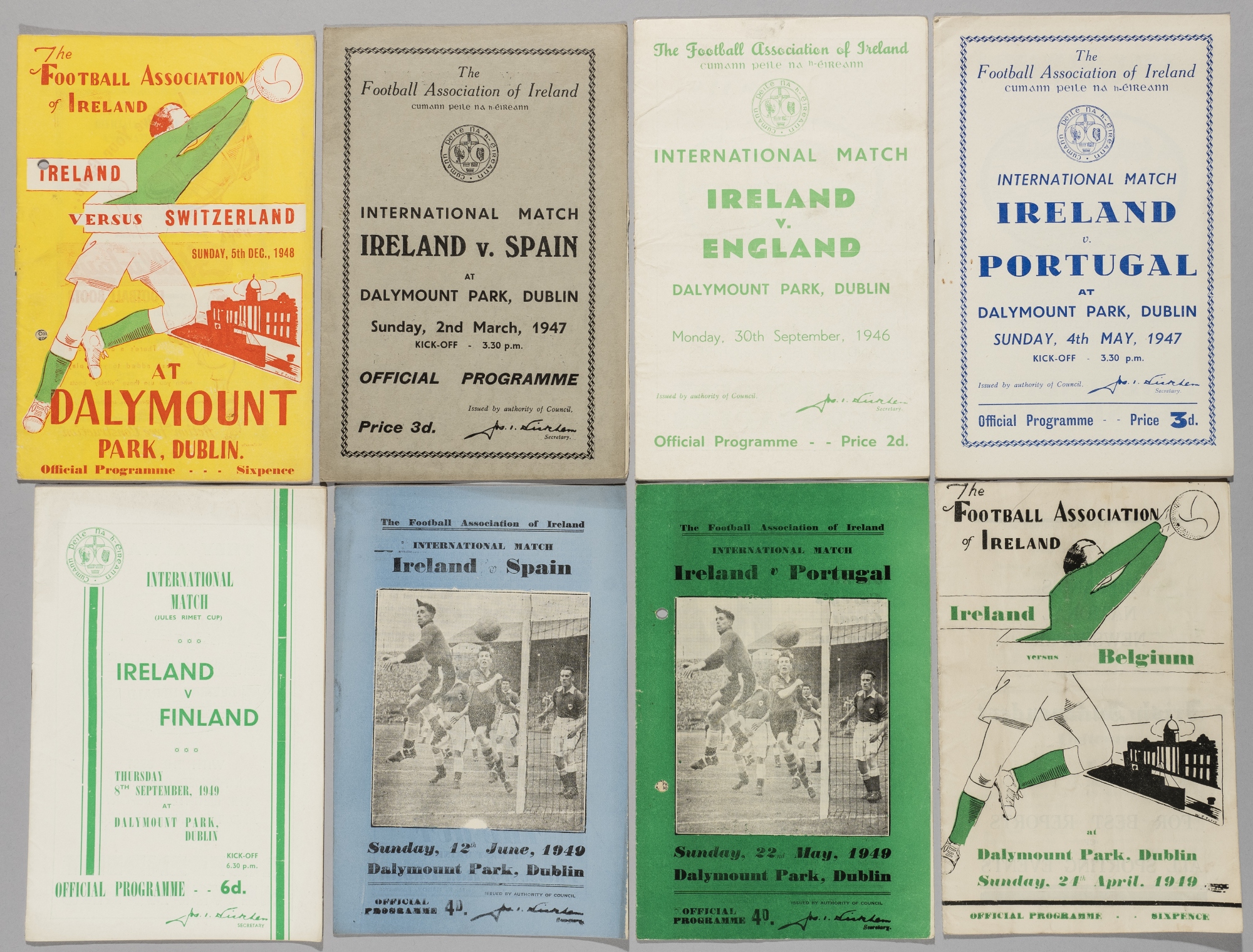 Republic of Ireland home international programmes, played at Dalymount Park, 1946-49, includes v England 30th September 1946; v Spain 2nd March 1947;