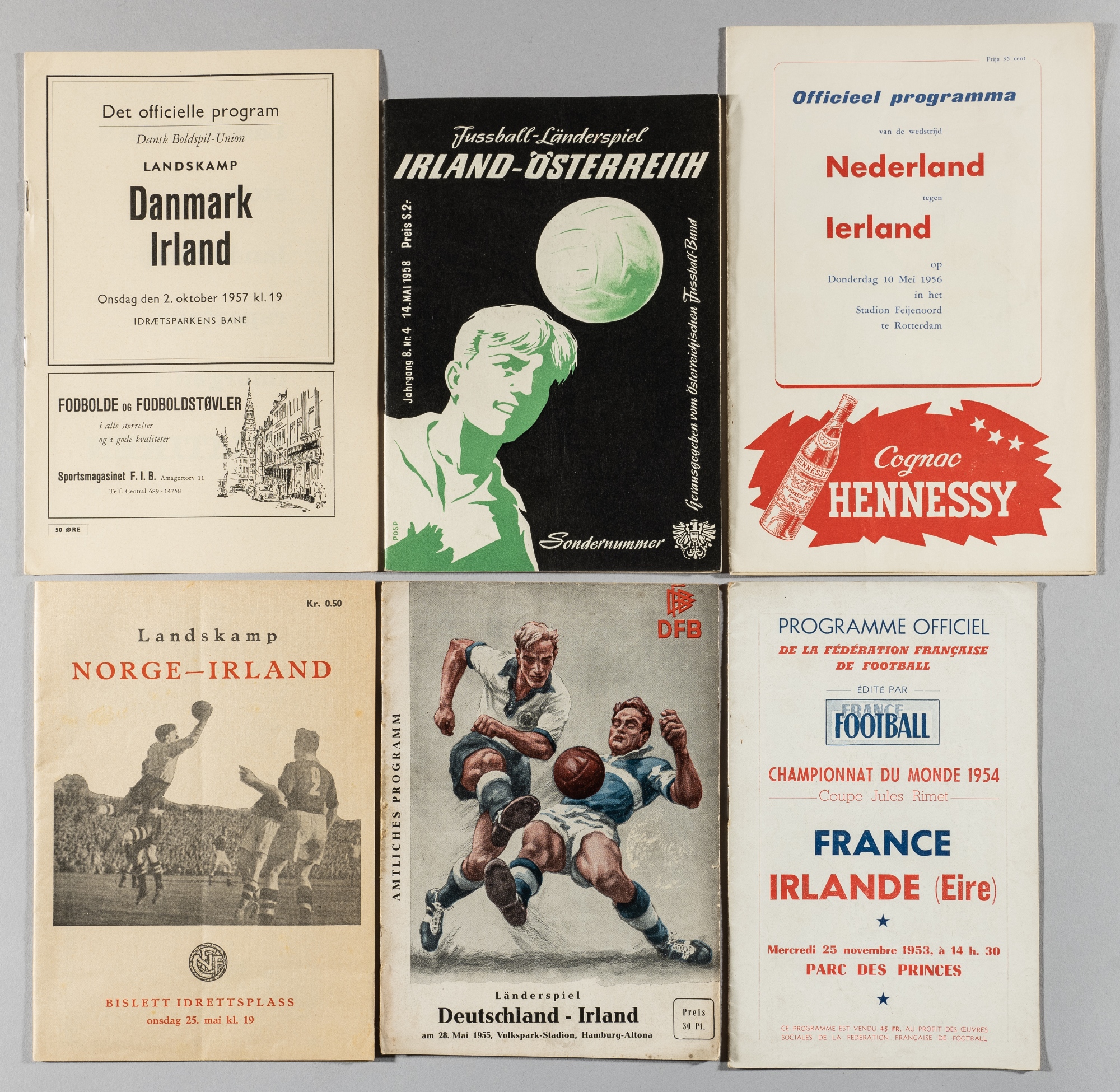 Republic of Ireland away programmes, 1953-58, including v France 25th November 1953; v Norway 25th May 1955; v Germany 28th May 1955; v Holland 10th