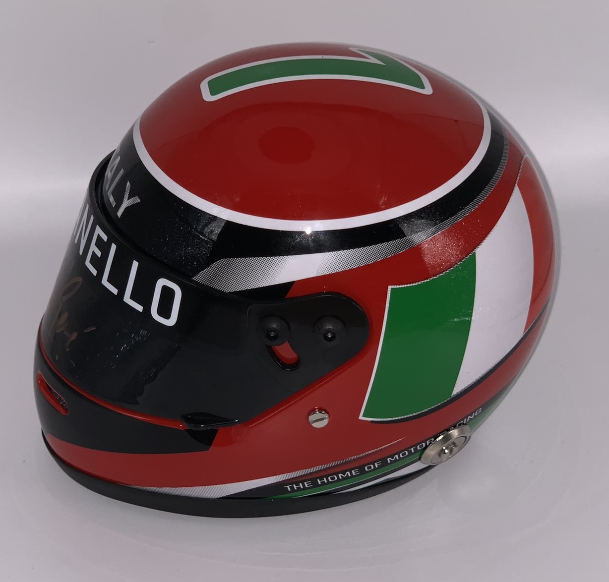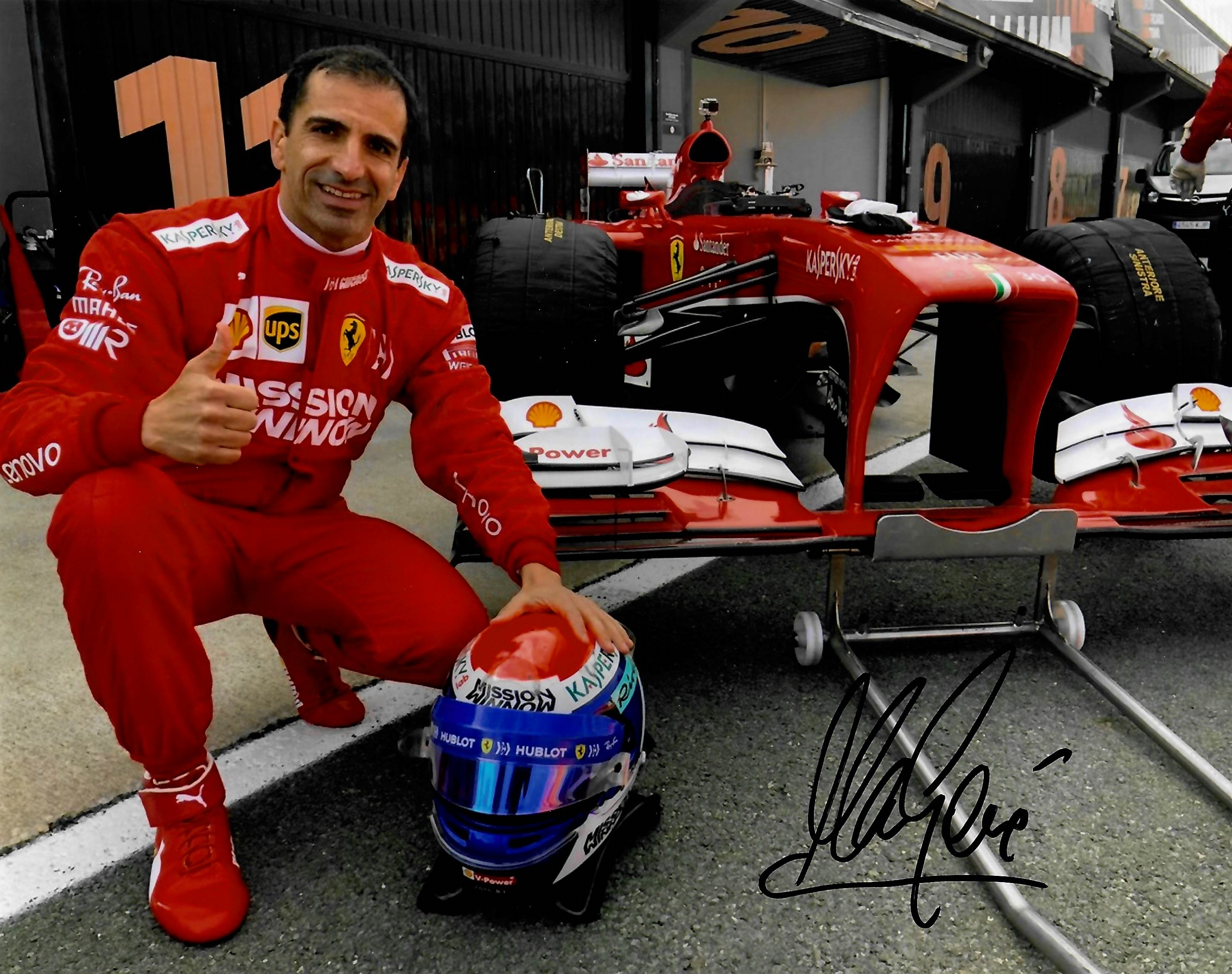 Marc Gene (Ferrari) signed Italian F1 ½ Scale Helmet, Signed on visor in gold sharpie. Marc Gene was test driver for Ferrari from 2004 -2010. He previously raced for Minardi and Williams with 36 F1 starts from 1999-2004. He later went on to Le Mans, winning the championship in 2009. Also included is signed 8 by 10in. Ferrari photograph. Both items come with COA and photo proof. (3)