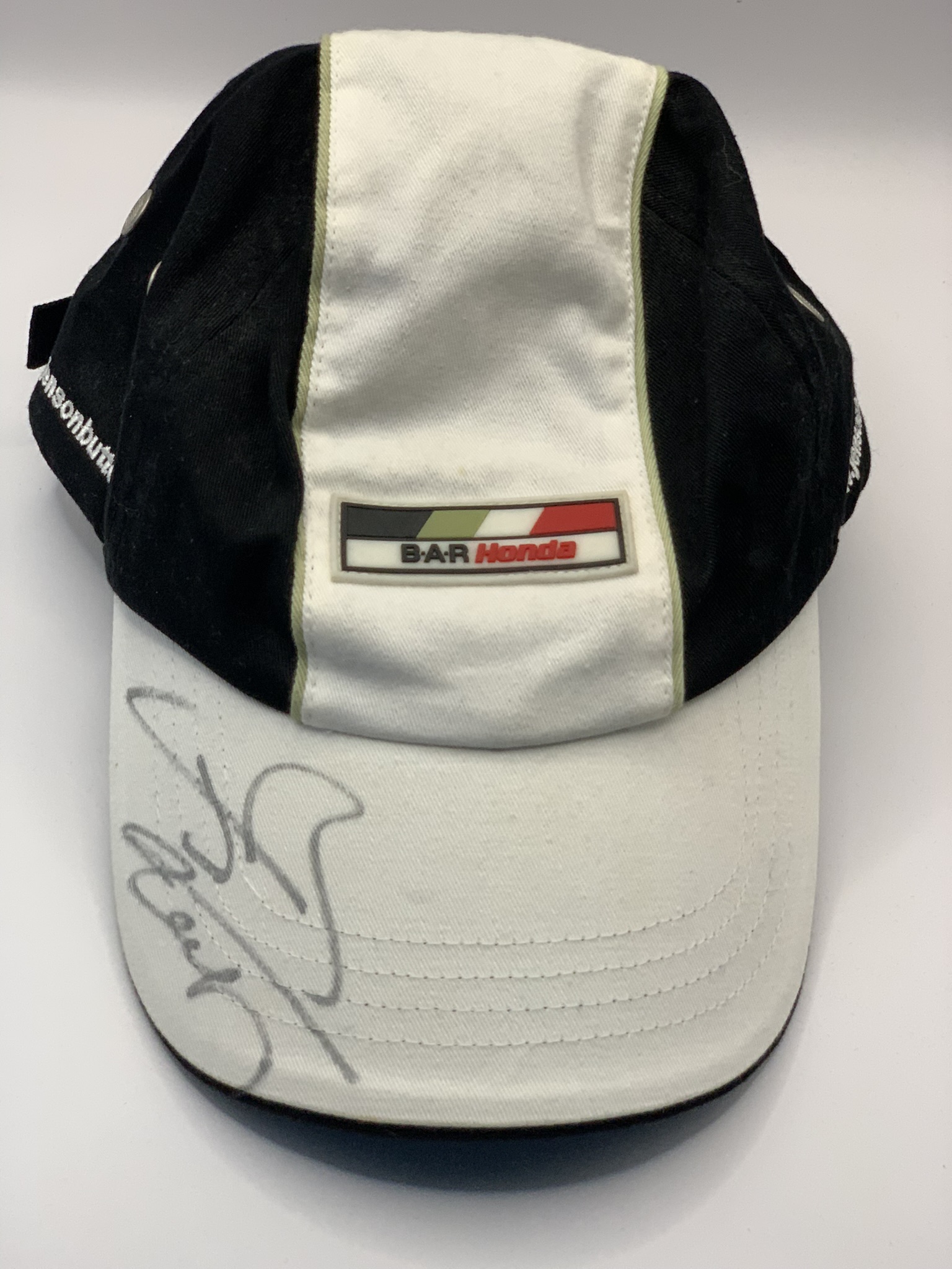 Jenson Button (UK) signed Honda Bar cap, signed in black permanent marker on peak. Button drove for Honda Bar from 2003-2008. Button then won his F1
