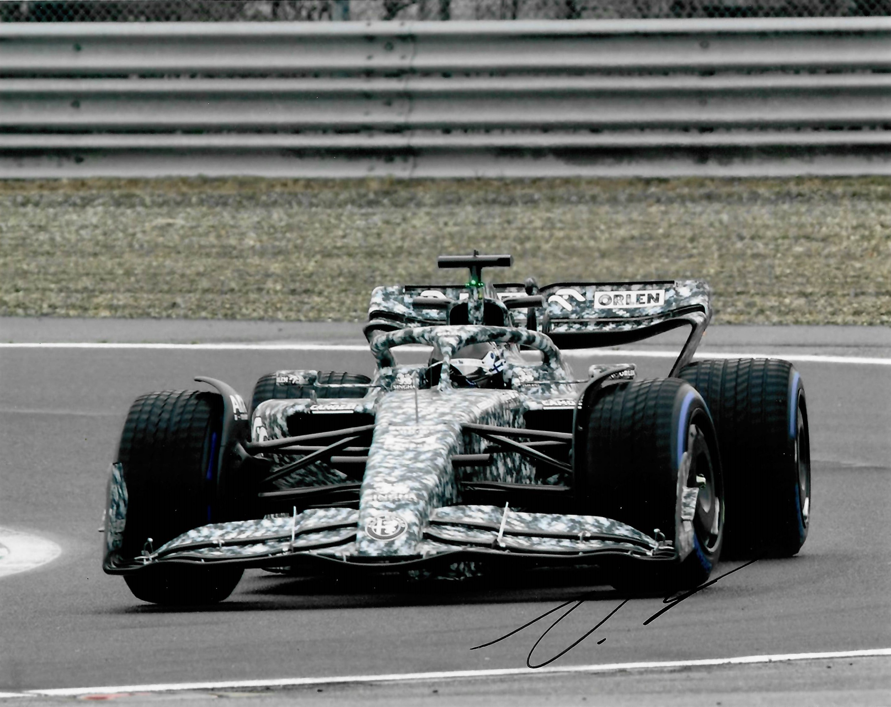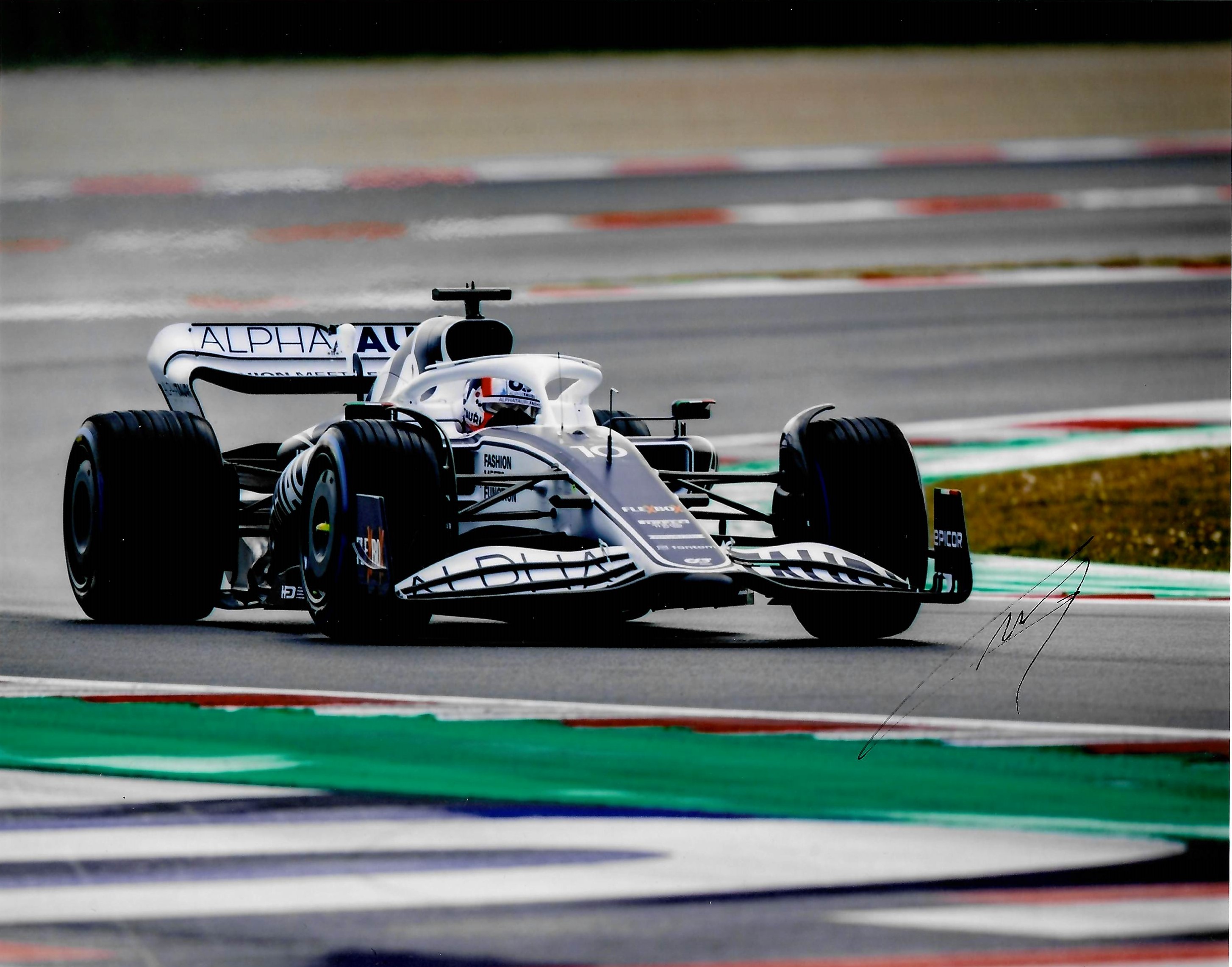 Collection of 2022 of six current F1 Drivers signed 8 by 10in. photographs, including Sebastian Vettel – Germany (Aston Martin Aramco Cognizant F1 Team), Zhou Guanyu – China (Alfa Romeo F1 Team Orlen), Valtteri Bottas – Finland (Alfa Romeo F1 Team Orlen), Pierre Gasly – France (Scuderia AlphaTauri), Yuki Tsunoda - Japan (Scuderia AlphaTauri), Esteban Ocon – France ( BWT Alpine F1 Team). Each photo comes with it’s own COA and exact photo proof. (6)