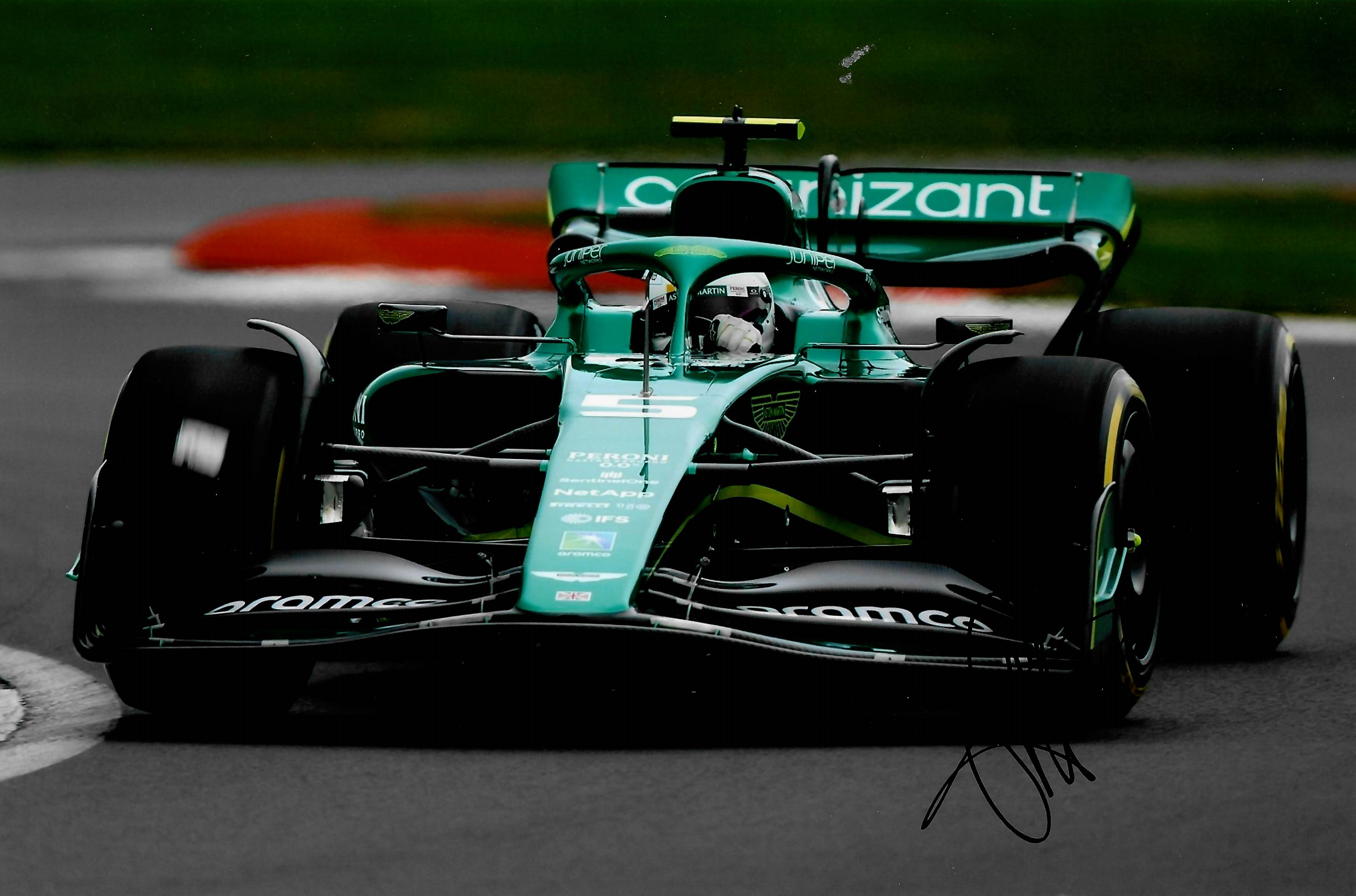 Collection of 2022 of six current F1 Drivers signed 8 by 10in. photographs, including Sebastian Vettel – Germany (Aston Martin Aramco Cognizant F1 Te