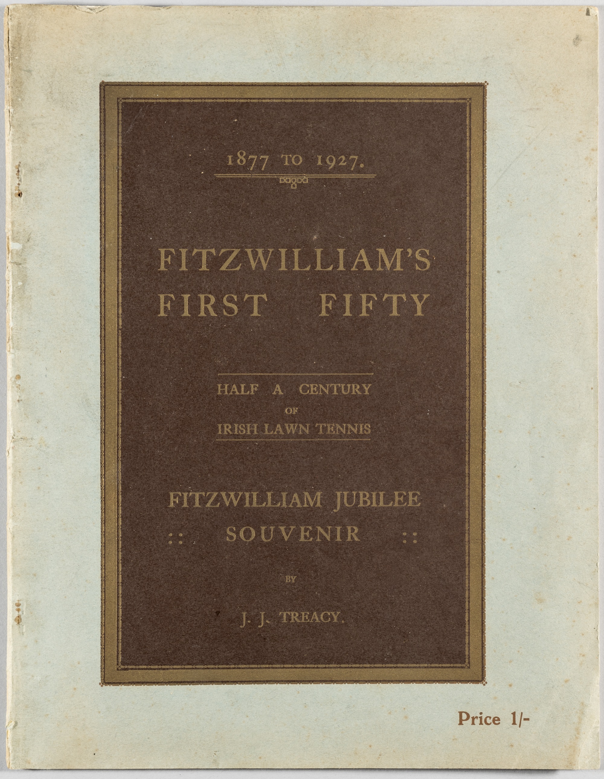Fitzwilliam's First Fifty 1877-1927 Half a Century of Irish Lawn Tennis by J J Treacy, 4to., wrappers, rare, wrapper bearing wear