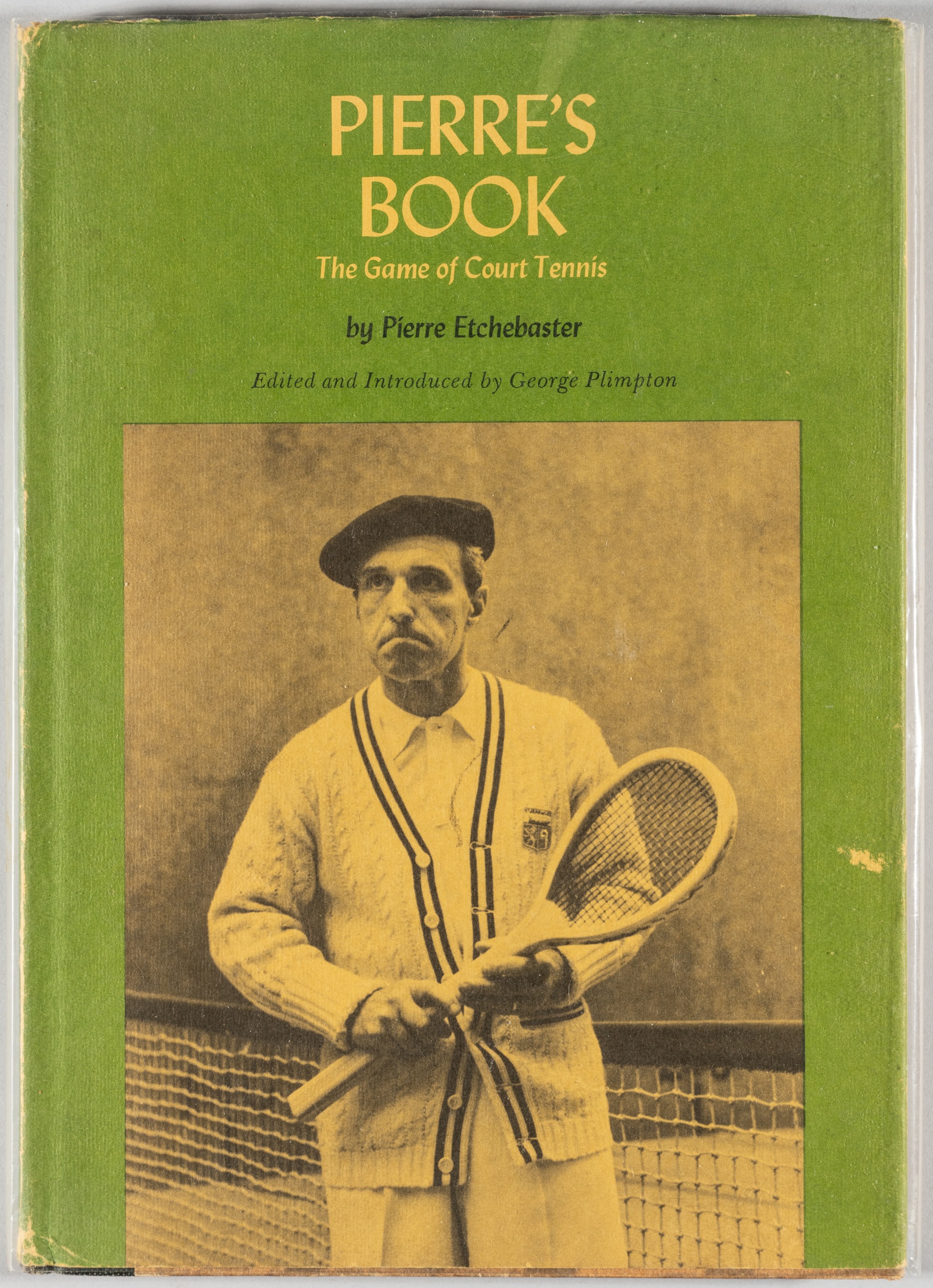 Pierre's Book: The Game of Court Tennis, by Pierre Etchebaster, with dust wrappers, 1971, bearing wear to dust cover