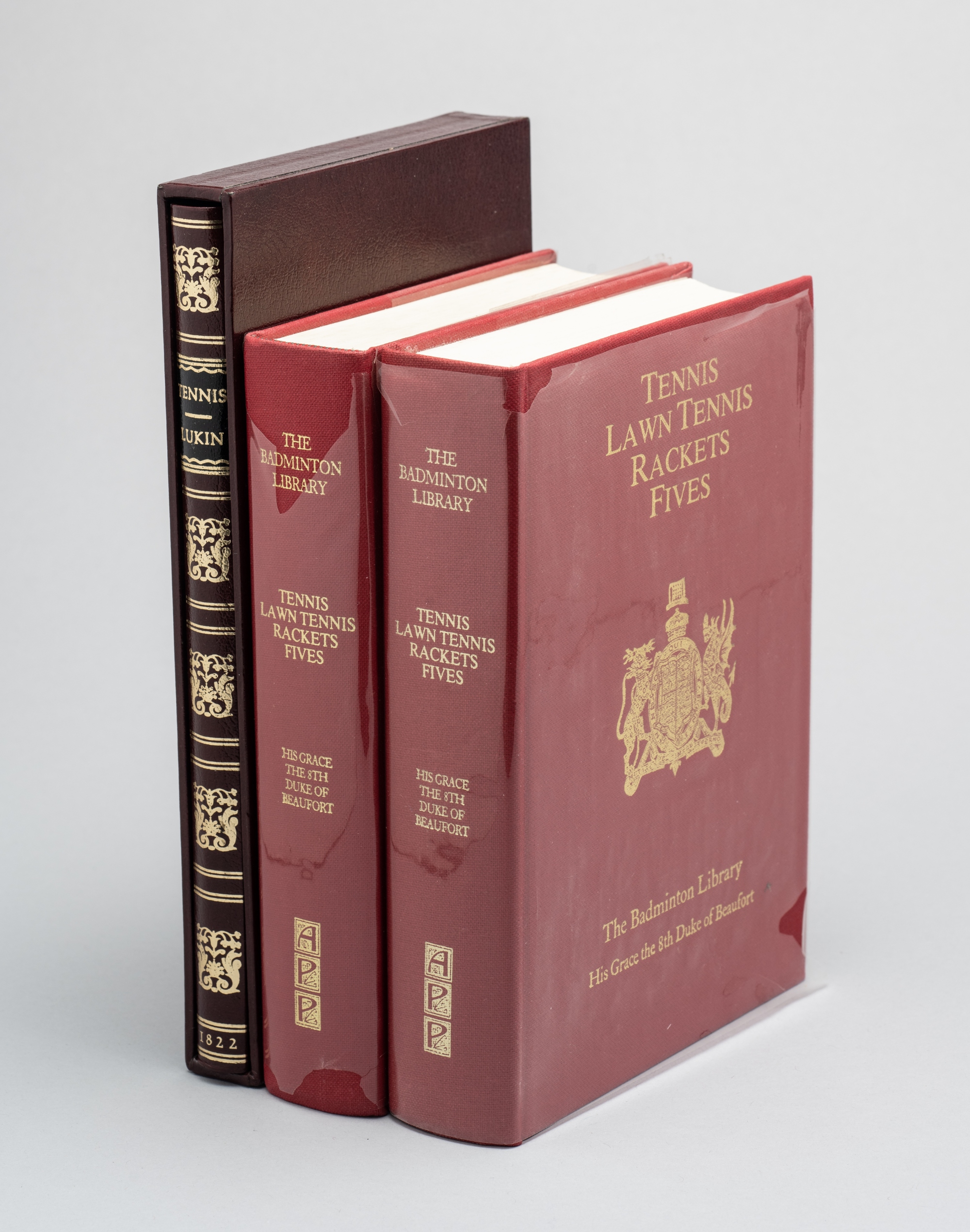 A print and three books of real tennis interest, engraved portrait of the player Charles Delahaye known as "Biboche", signed AM in the plate, inscribed in pencil joueur de paume, good condition, mounted, framed & glazed, 64 by 48cm.; together with three reprints of classic tennis titles, Robert Lukin's "A Treatise on Tennis" 1991 limited edition of 100, this copy numbered 92 and signed by Dr Michael Wooldridge, deluxe quality in slipcase; and two copies of the 1987 reprint of Badminton Library "Tennis, Lawn Tennis, Rackets, Fives" (4) Please be aware all glass will be removed from framed and glazed items prior to posting and may result in delays to shipping your items. (This service is included in the cost of postage and packing). We can also totally remove all framing and mounts upon request to reduce shipping costs. Alternatively lots can be collected in person by prior appointment from NN8 1RT.