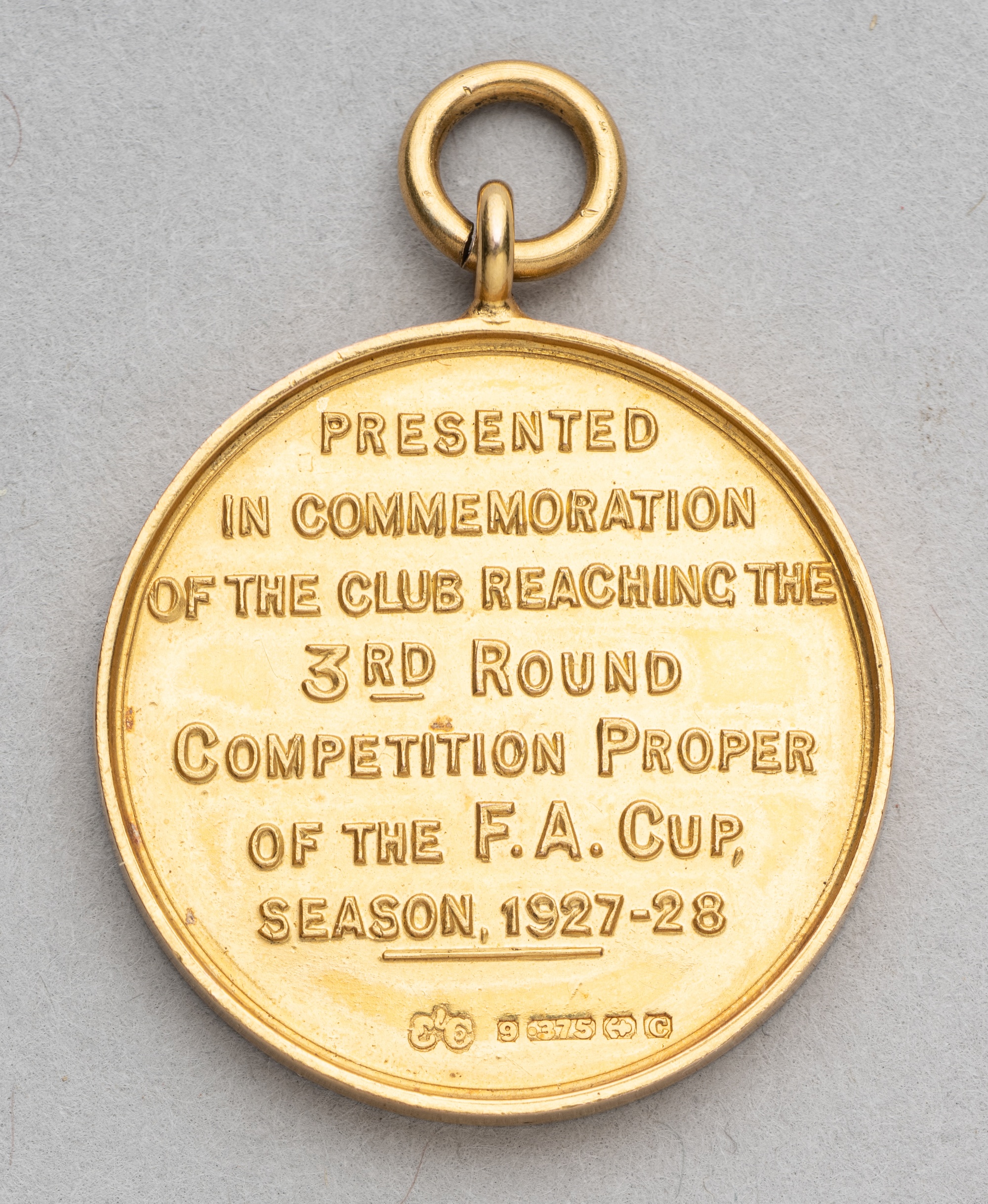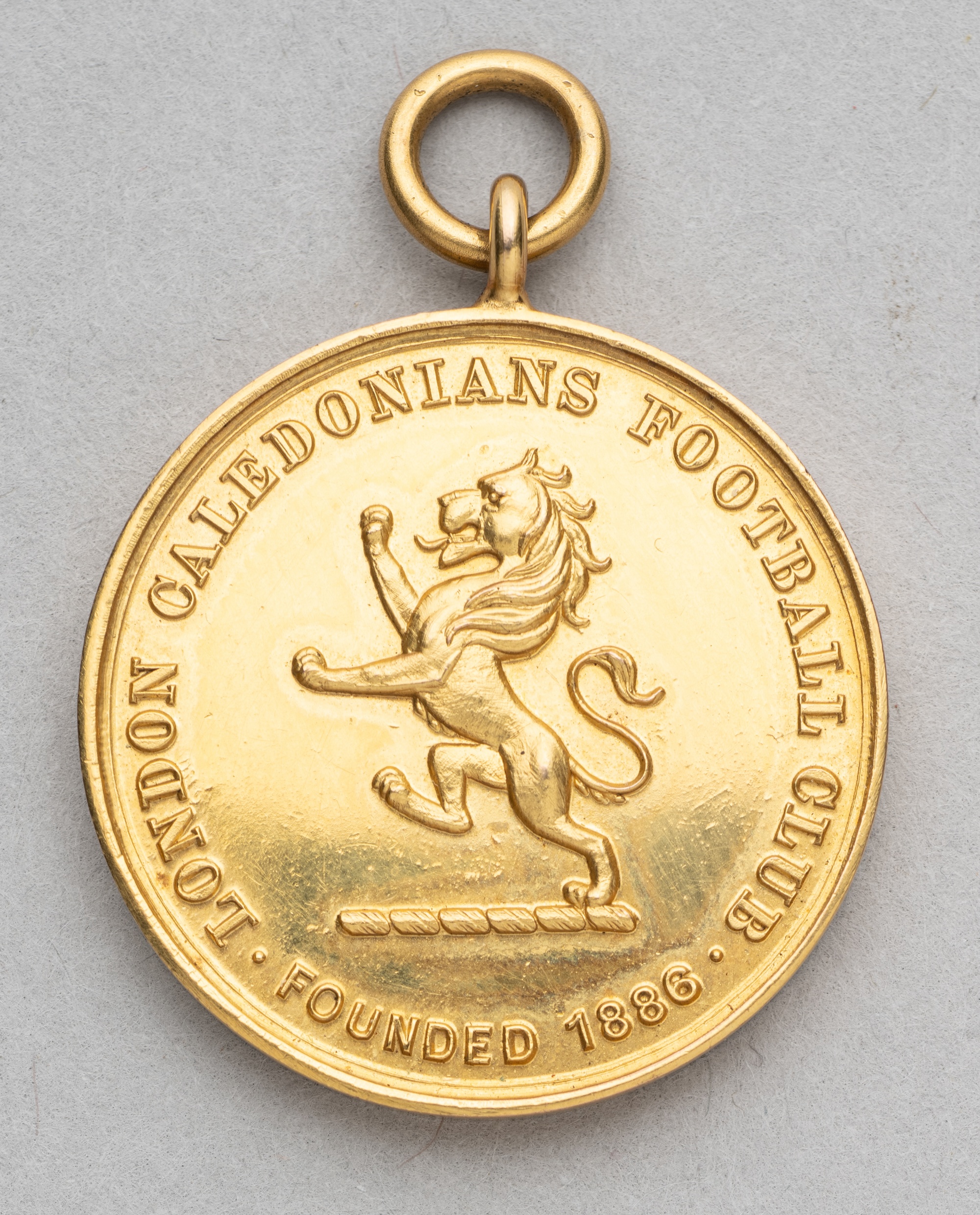 Gold medal commemorating London Caledonians FC reaching the third round of the F.A. Cup in 1927-28, 9ct gold, inscribed obverse and reverse, weight 9