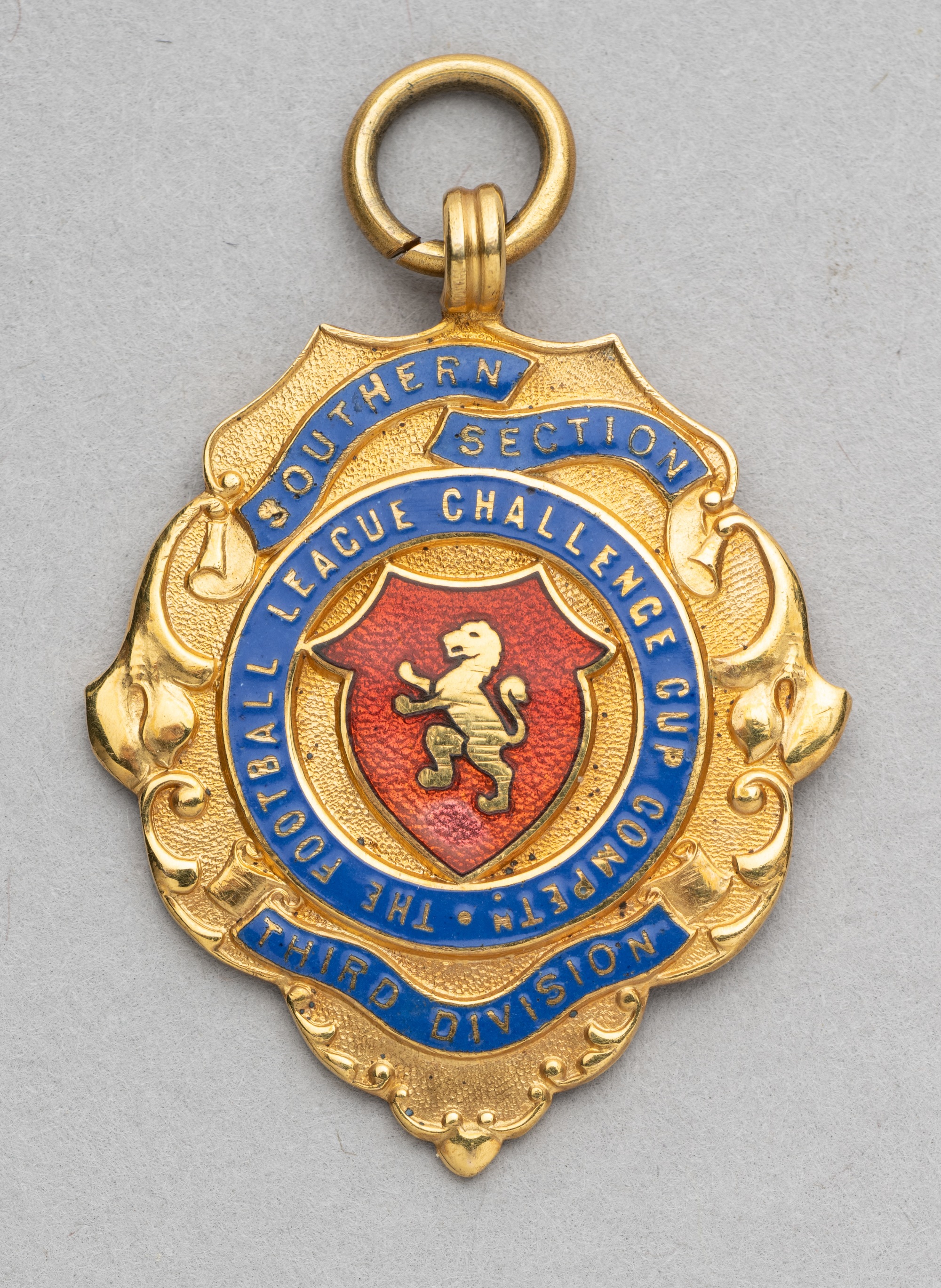 Football League Third Division (Southern Section) Challenge Cup winner's medal awarded to Percy Whittaker the of Reading FC goalkeeper, Season 1937-38, 9ct gold and enamel, inscribed to the obverse, not named to the player but acquired by the present seller directly from the family, weight 8gms., in original fitted case Reading FC beat Bristol City 6-2 on aggregate. Percy Whittaker made a total of 213 appearances for Reading FC, having joined the club in June 1933.