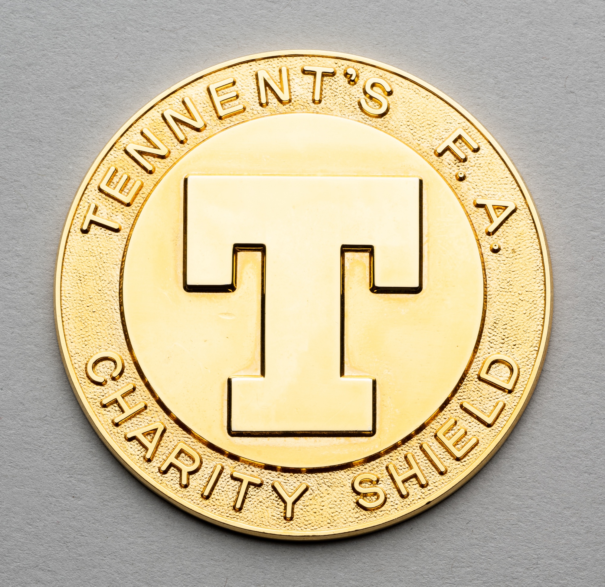 Tennent's F.A. Charity Shield sponsor's medal, Arsenal v Tottenham Hotspur, played at Wembley, 10th August 1991, obverse bearing sponsor's emblem and