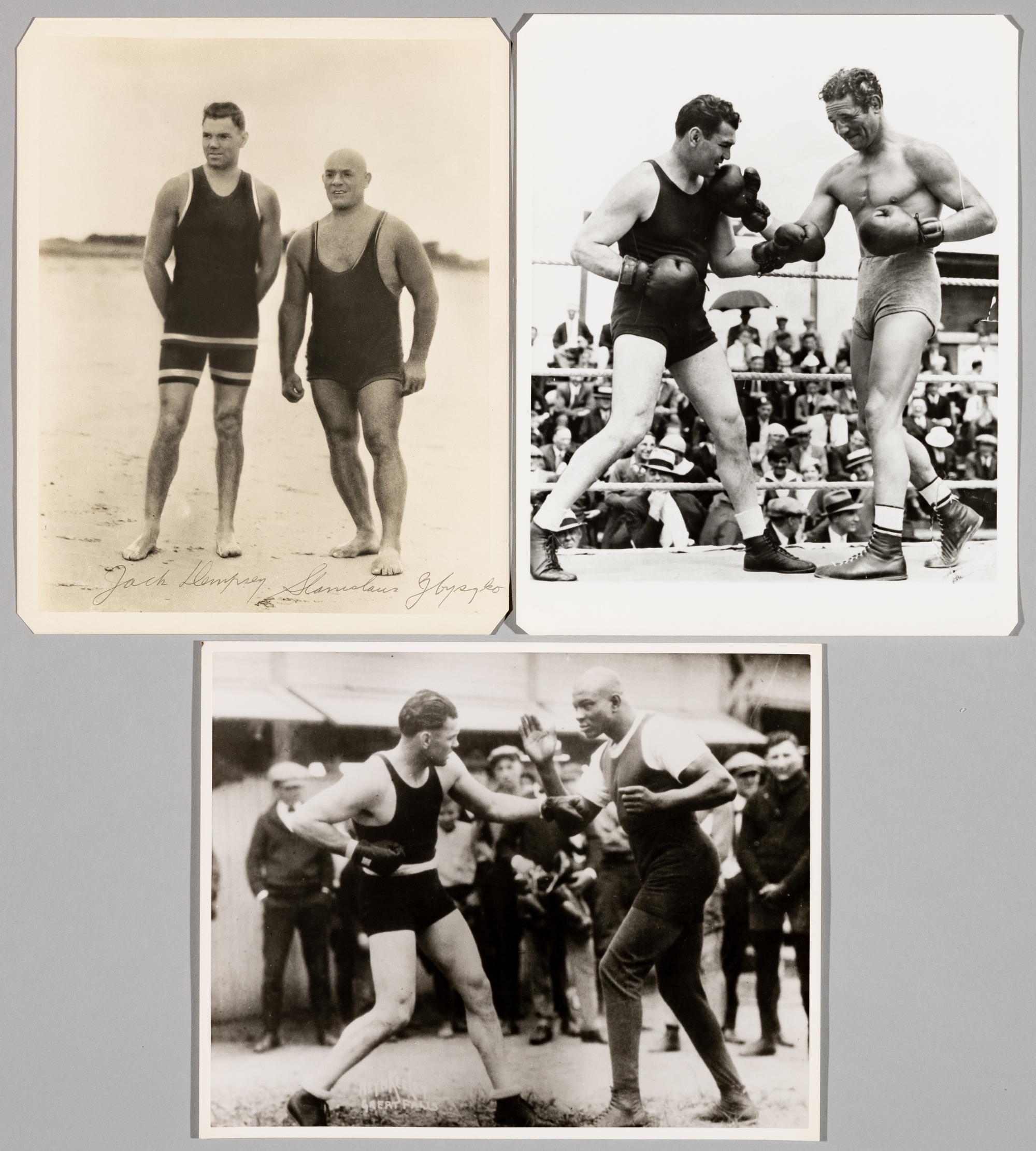 Boxing: Jack Dempsey with opponents and sparring partners three b&w / sepia-toned 10 by 8in. heavyweight boxing photographs, including Dempsey and Tu