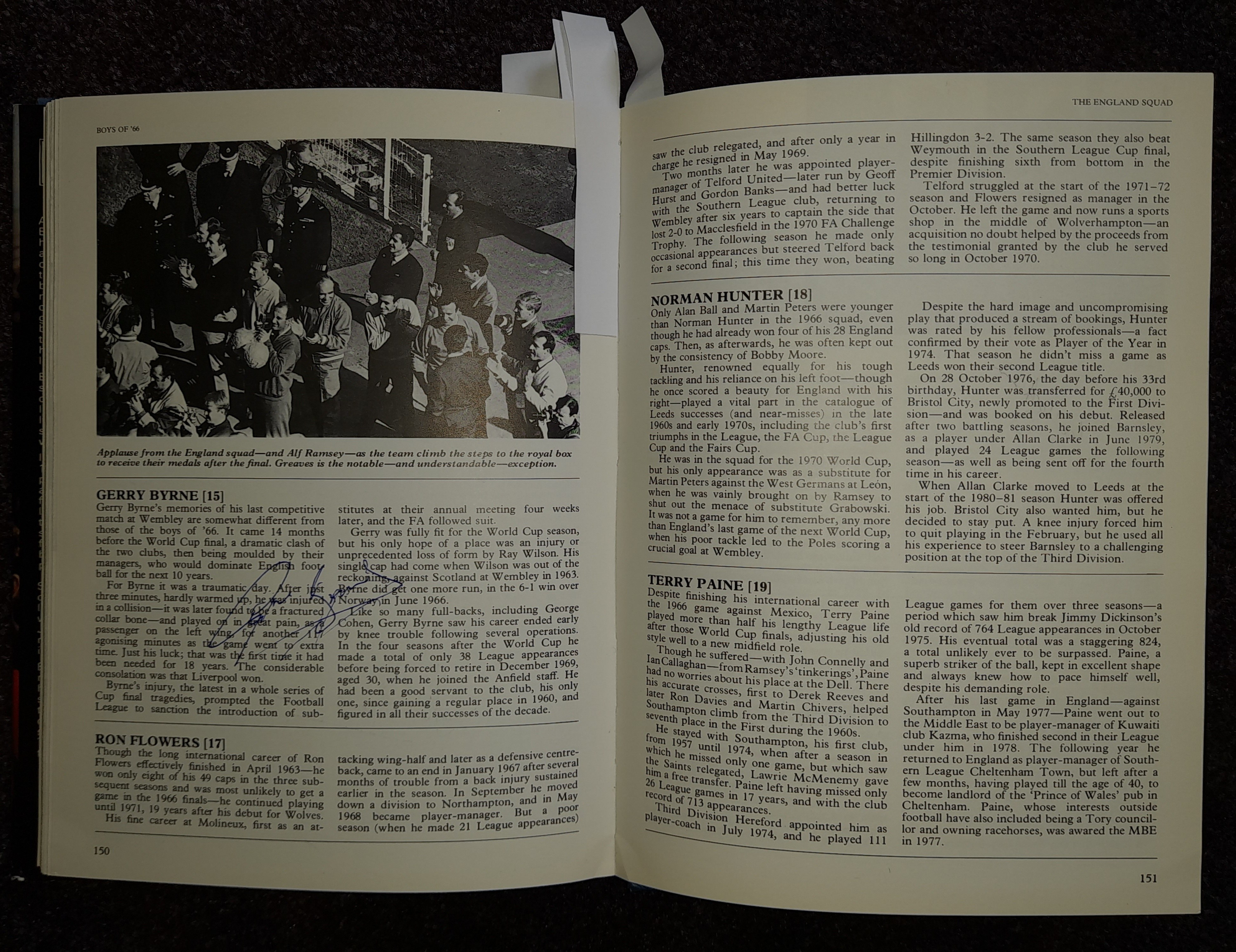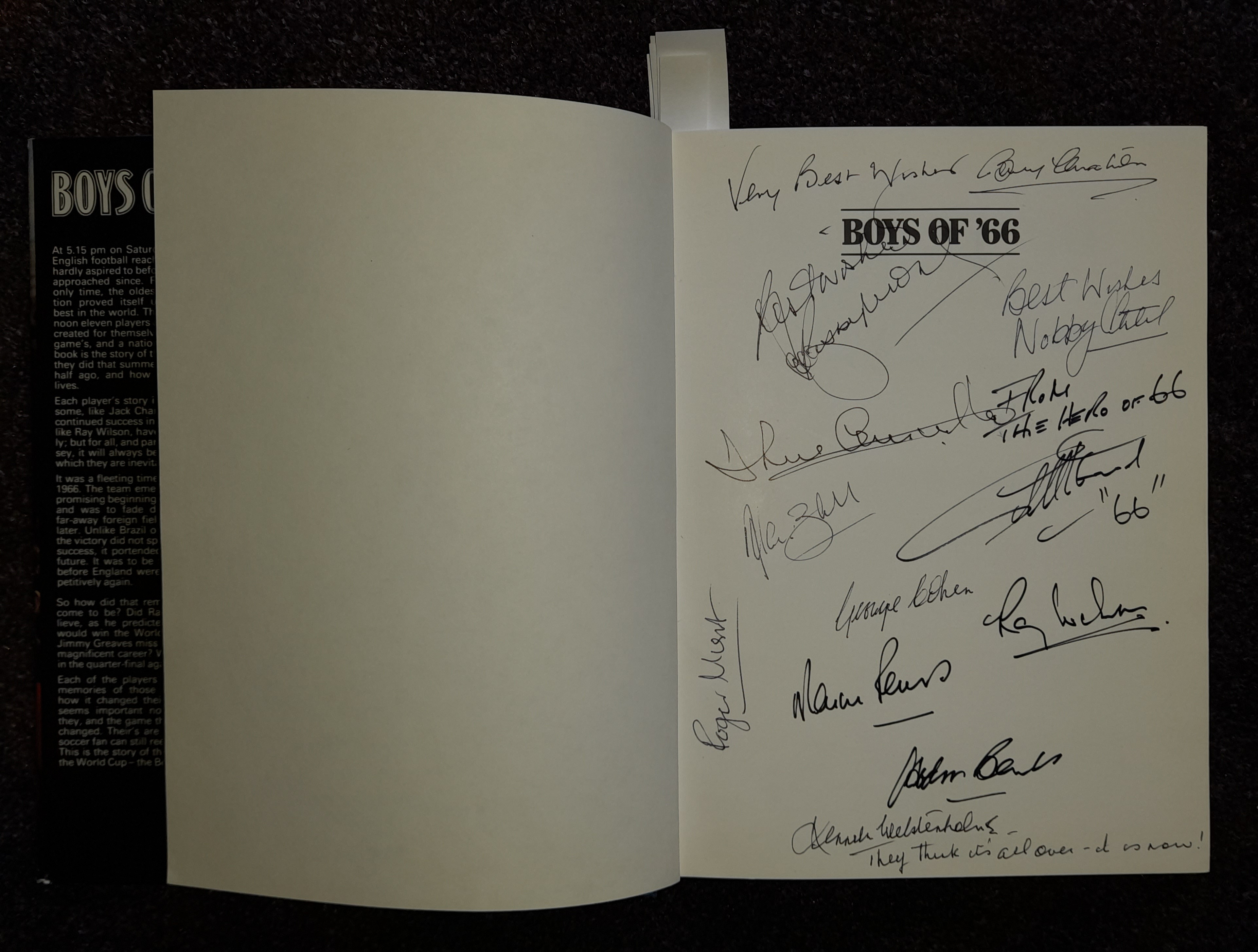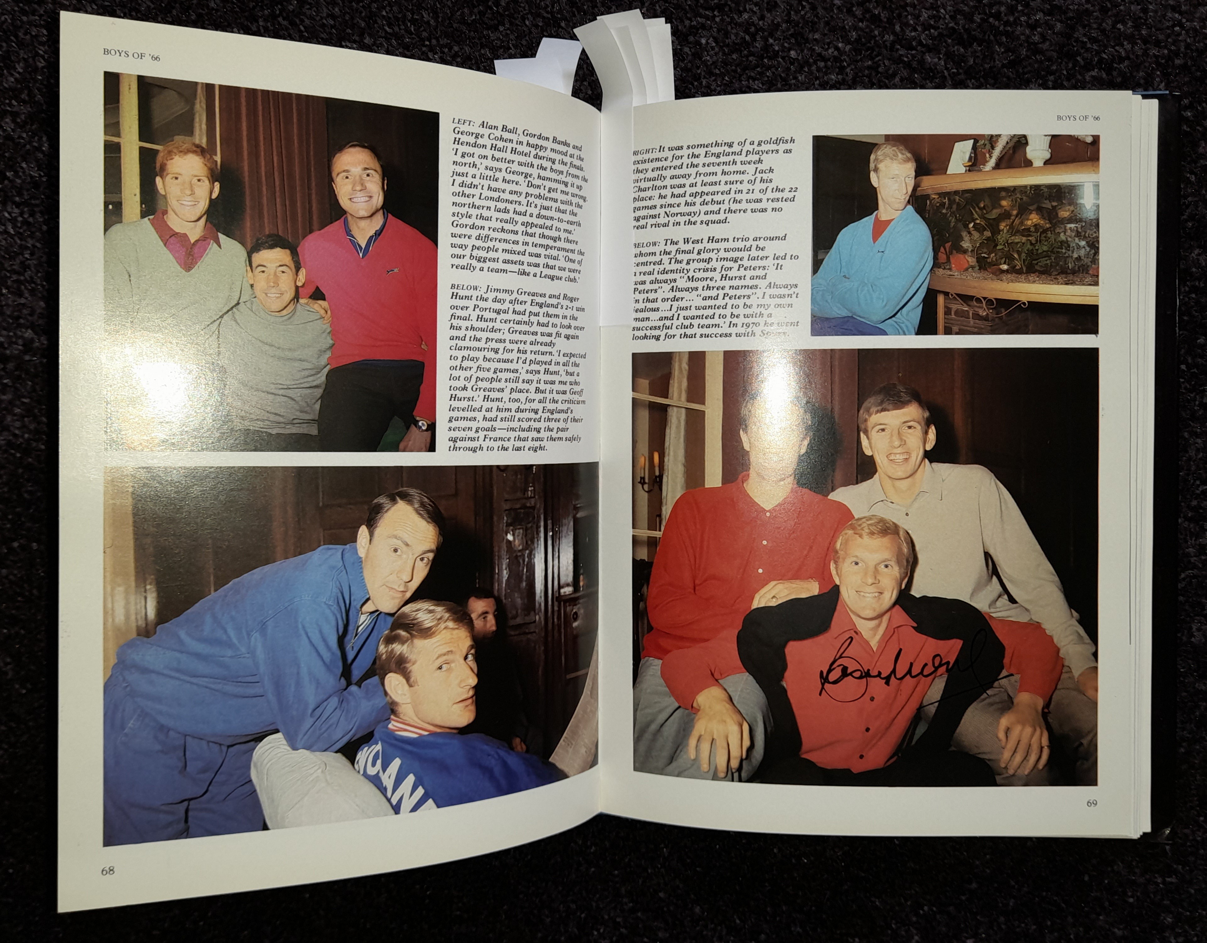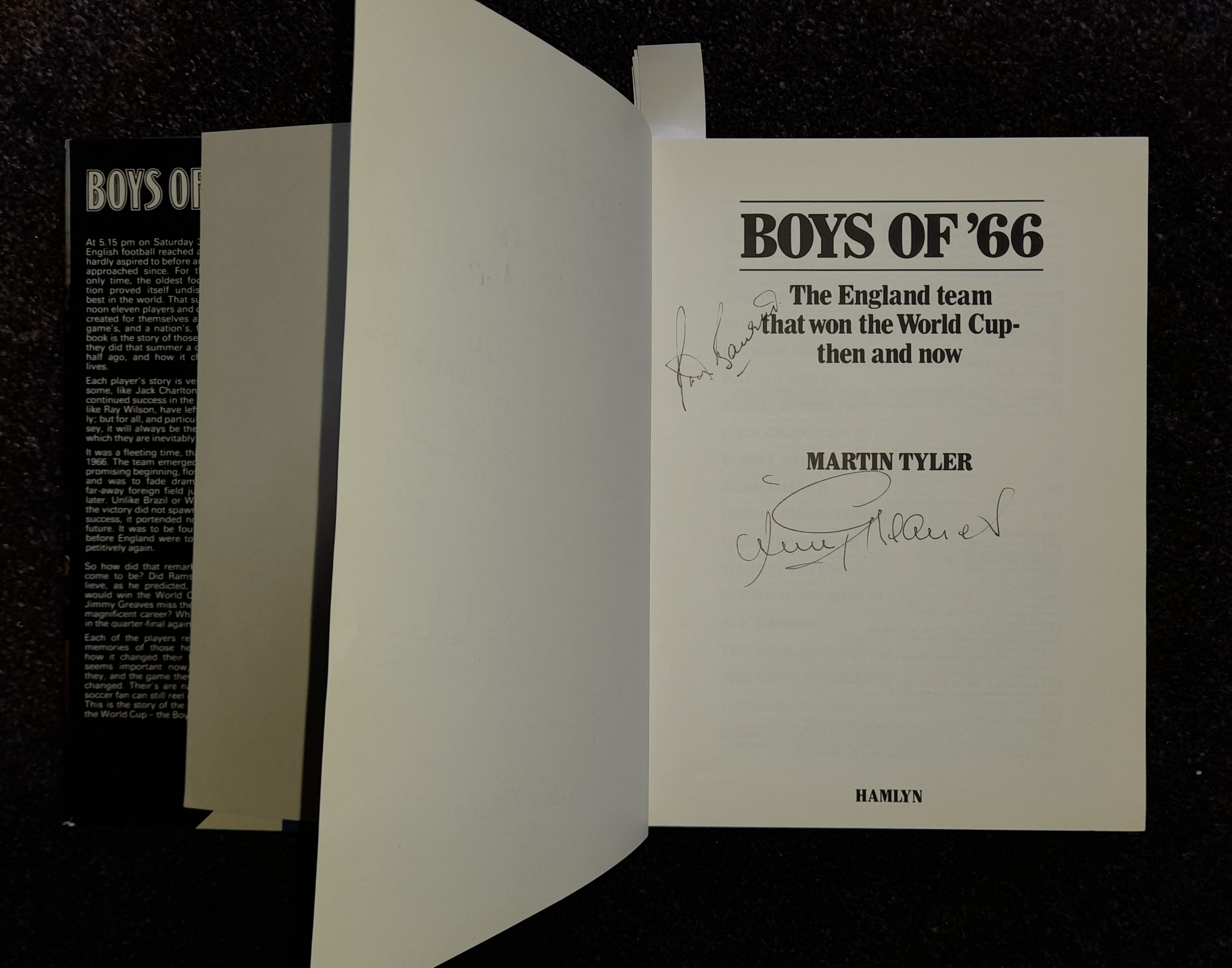 "Boys of 66" book featuring the autographs of the squad including Bobby Moore three times, written by Martin Tyler it covers the England team that won
