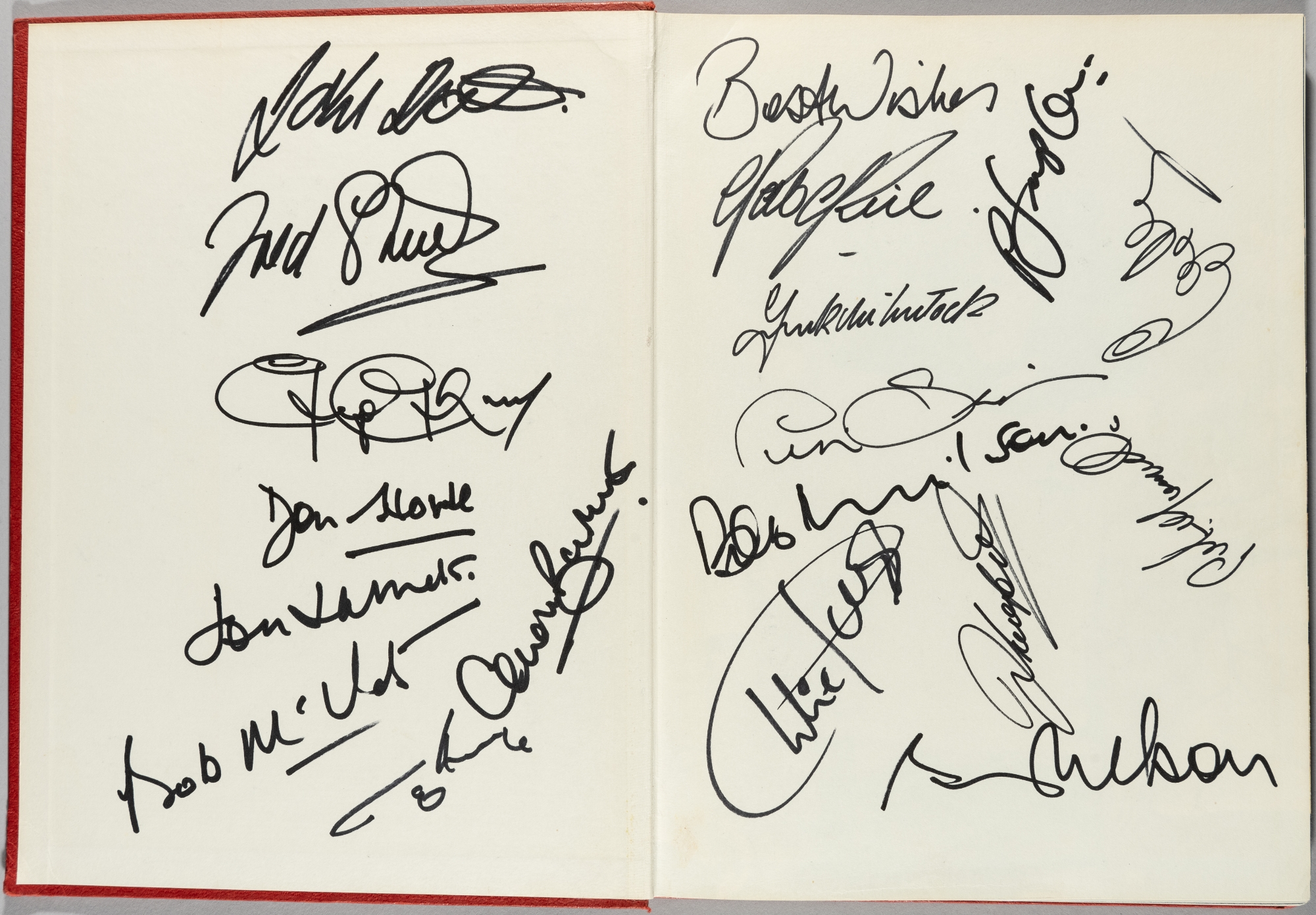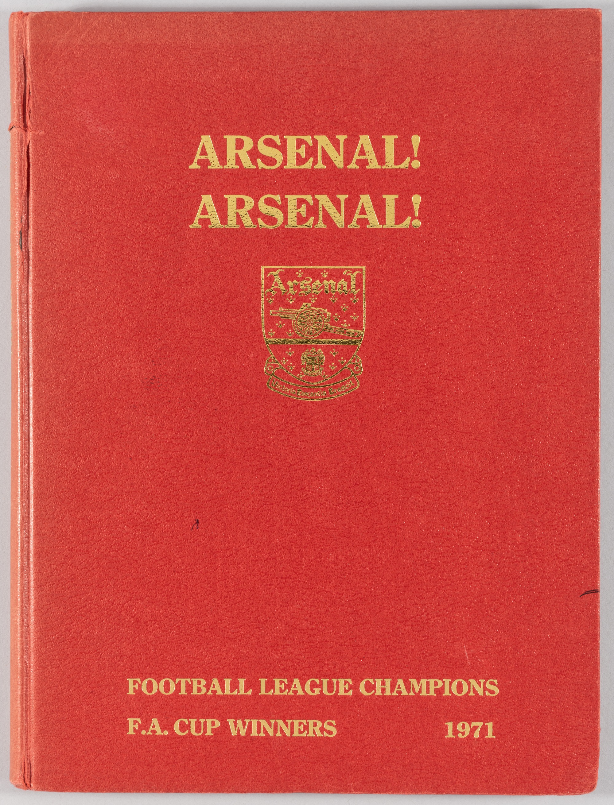 'Arsenal ! Arsenal !', book, the story of 1970-71 double winning side, signed to the inside front end papers in black marker by Bob Wilson, Frank McLintock, Pat Rice, Bob McNab, Peter Storey, Peter Simpson, Eddie Kelly, Charlie George, John Radford, Ray Kennedy, George Graham, John Roberts, Peter Marinello, Jon Sammels, Geoff Barnett, Sammy Nelson, Don Howe and Fred Street, slight damage to spine, (18)