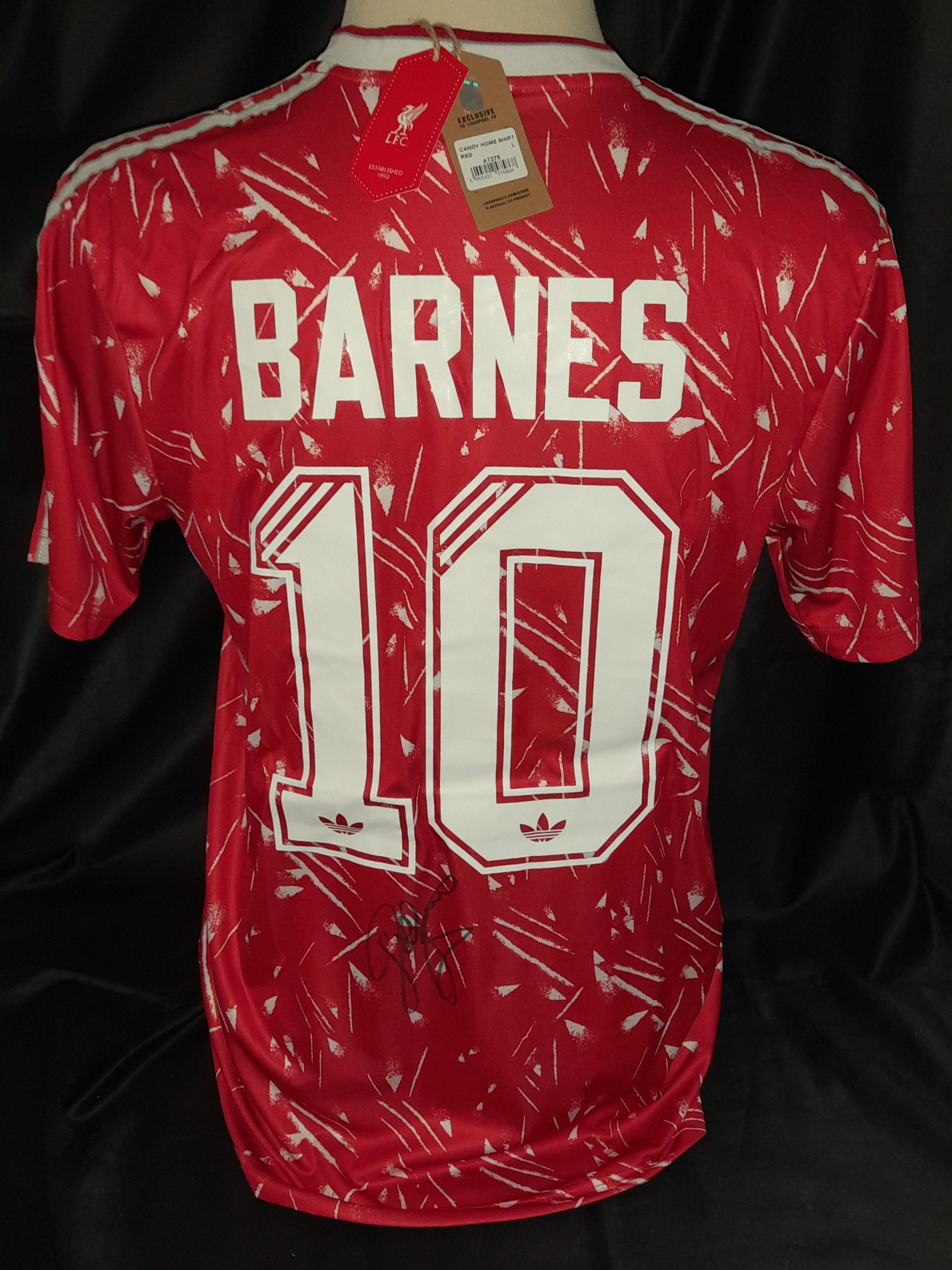 Rare Liverpool Candy sponsored 1989-91 jersey (official club merchandise) signed by four Legends, John Barnes, Ian Rush, Kenny Dalglish and Peter Beardsley, signed to the front with John Barnes again signing to reverse below his name and number, official club shirt with tags still attached.