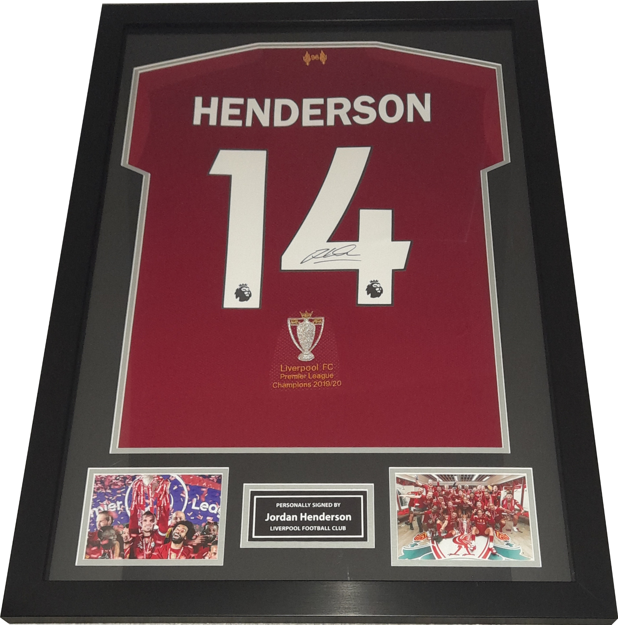 Jordan Henderson Liverpool captain signed & framed 2019 Premier League winners commemorative jersey, with certificate of authenticity and photograph