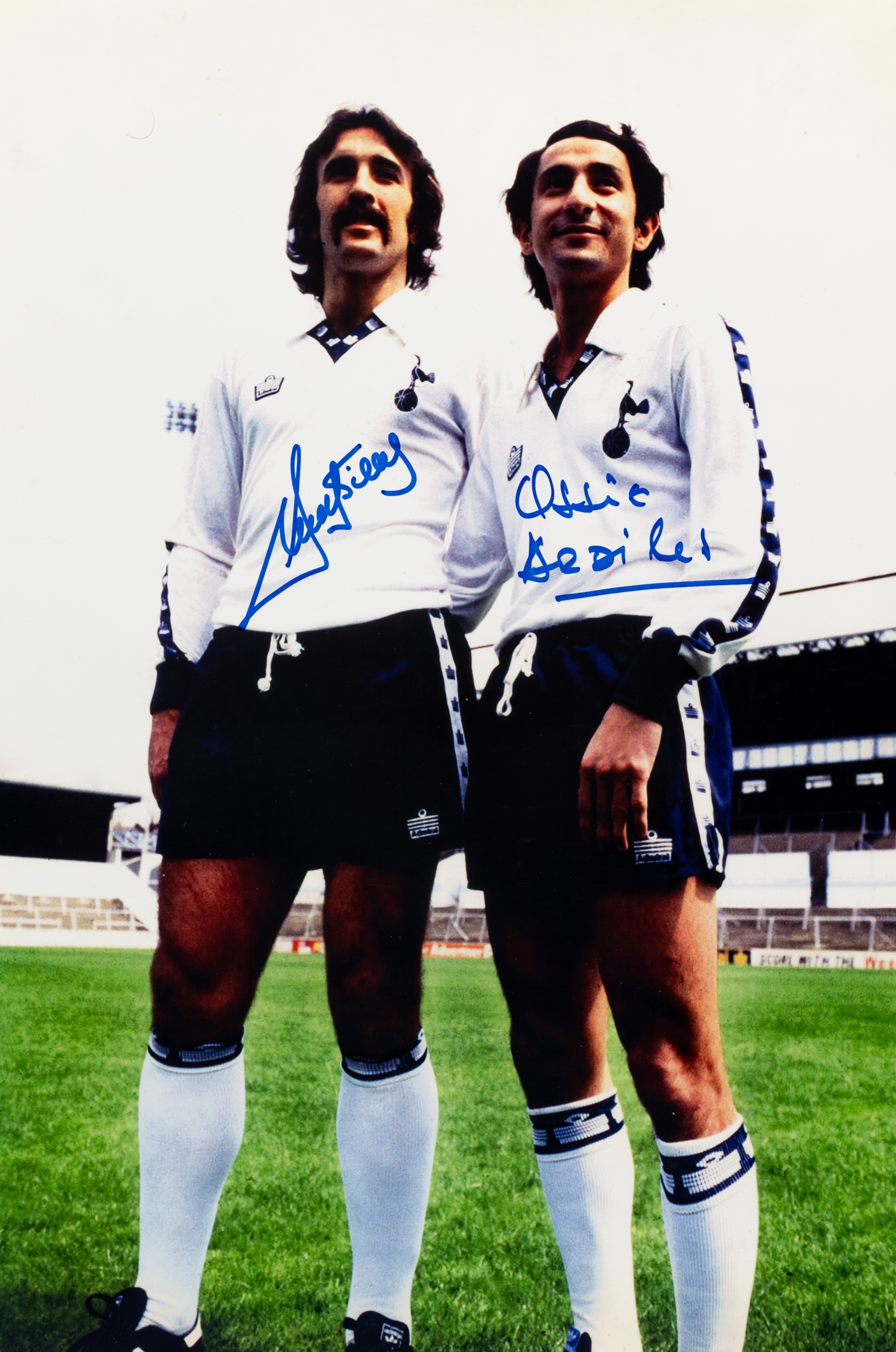 Tottenham Hotspur,- Ossie Ardiles & Ricky Villa 1978, large 16 by 12in. colour photographic autographed display, photograph: World Cup winners Osvaldo Ardiles and Ricardo Villa wearing their Tottenham kits after signing for the club for the 1978-79 season straight after the 1978 World Cup. Double signed 16 by 12in. colour photographic display photograph.