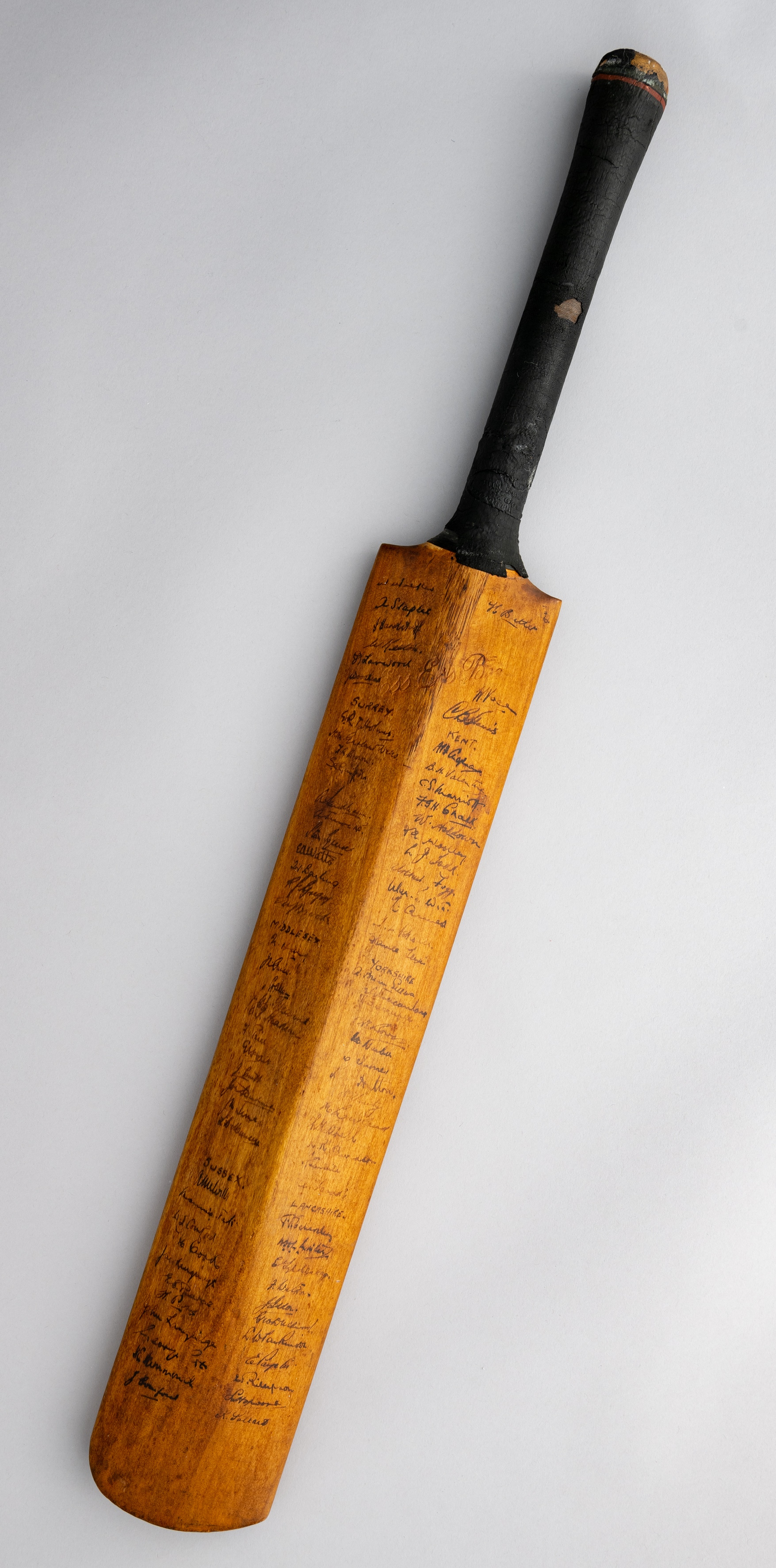 Cricket bat autographed by the 1934 England and Australia Ashes teams, Sandham Strudwick 'Special' cricket bat, the front autographed by the Austral