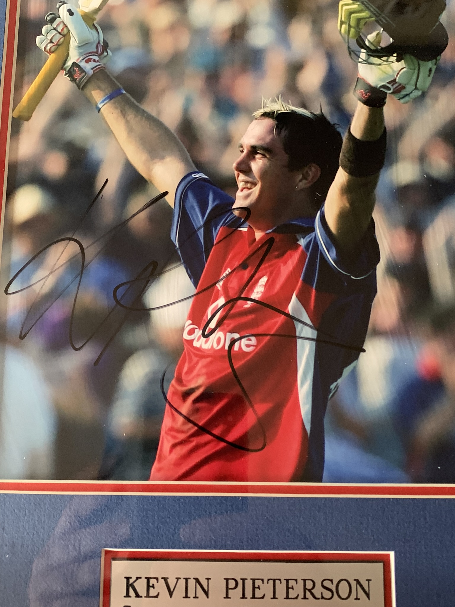 England: Kevin Pietersen signed 8 by 10in. photograph, professionally framed / glazed, double matted and plaque. Frame Size: 35 by 50cm. Pietersen was an exciting ODI and Test batsman. Comes with COA and photo proof of signing.