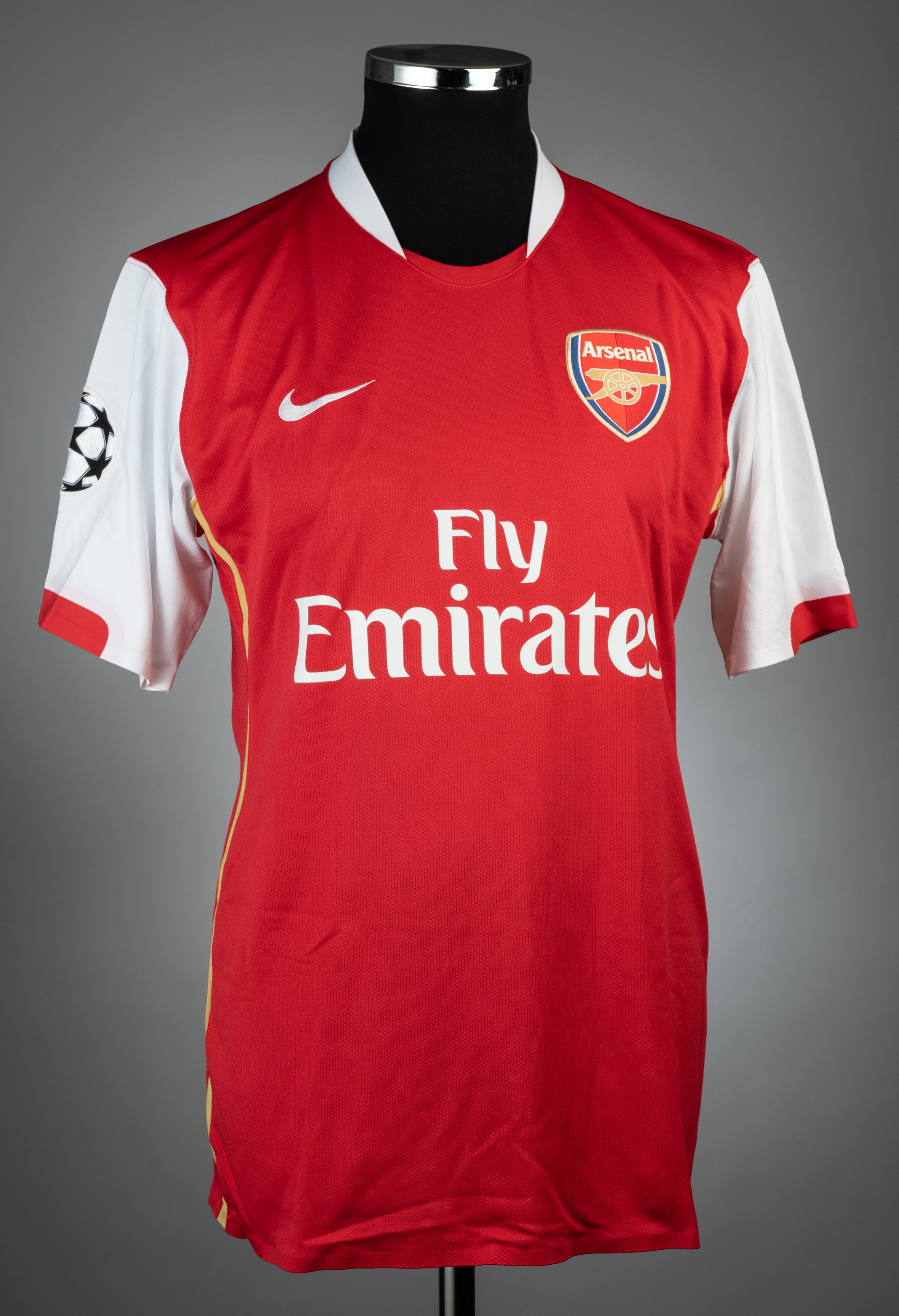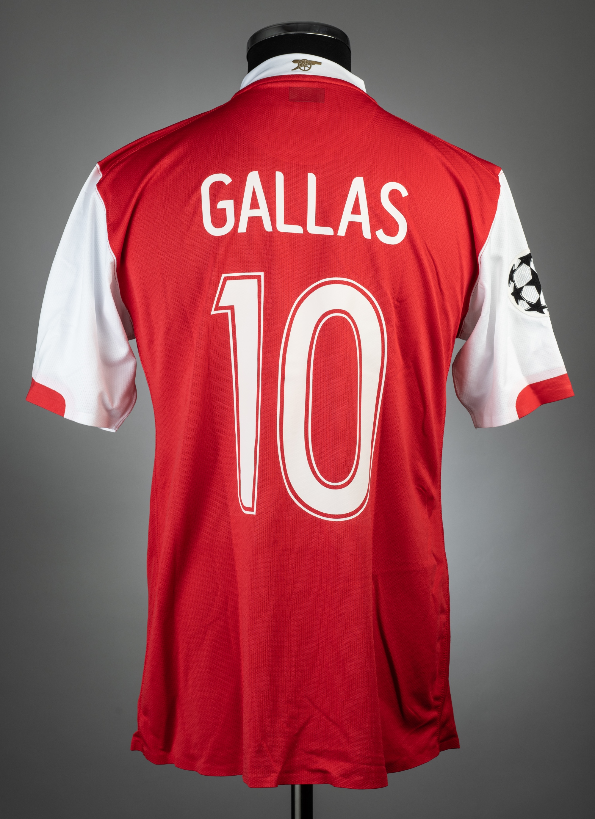 William Gallas red Arsenal UEFA Champions League no.10 jersey v P.S.V., played at Emirates Stadium, 7th March 2007, match issue, Nike, short-sleeved with UEFA STARBALL sleeve badge, club crest and sponsor logo, reverse lettered GALLAS, size L, condition good with little wear This fixture resulted in a 1-1 draw.