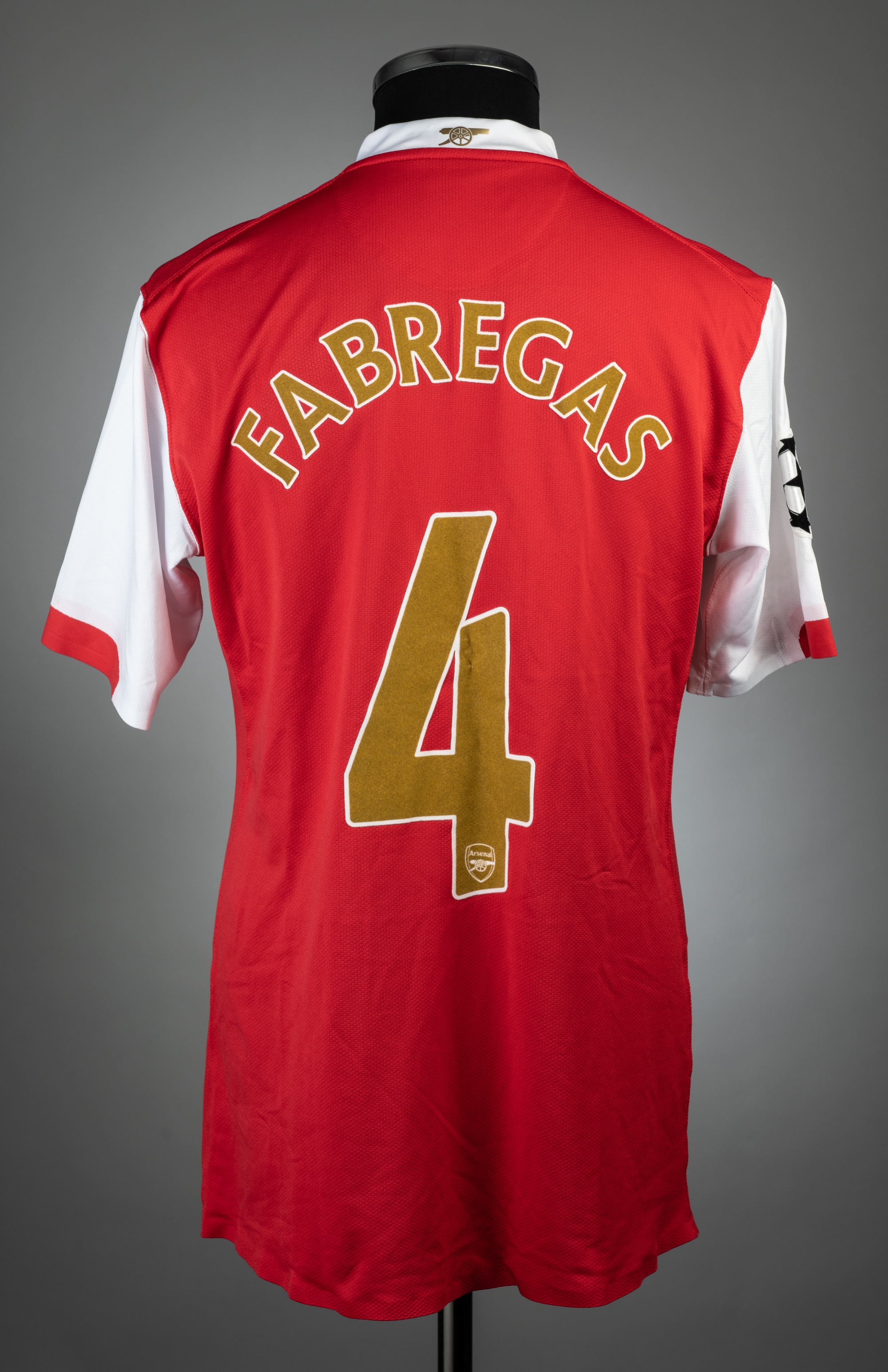 Cesc Fabregas red and white Arsenal UEFA Champions League no.4 jersey v Liverpool, played at Emirates Stadium, 2nd April 2008, match issue, Nike, short-sleeved with UEFA STARBALL sleeve badge, club crest and sponsor logo, reverse lettered FABREGAS, size L This fixture resulted in a 1-1 draw.