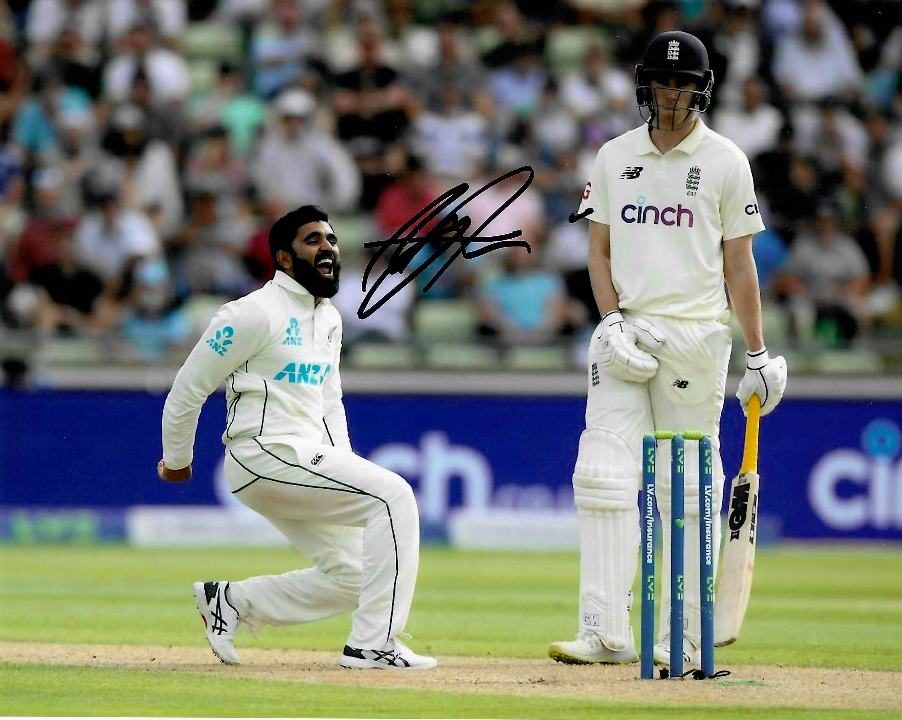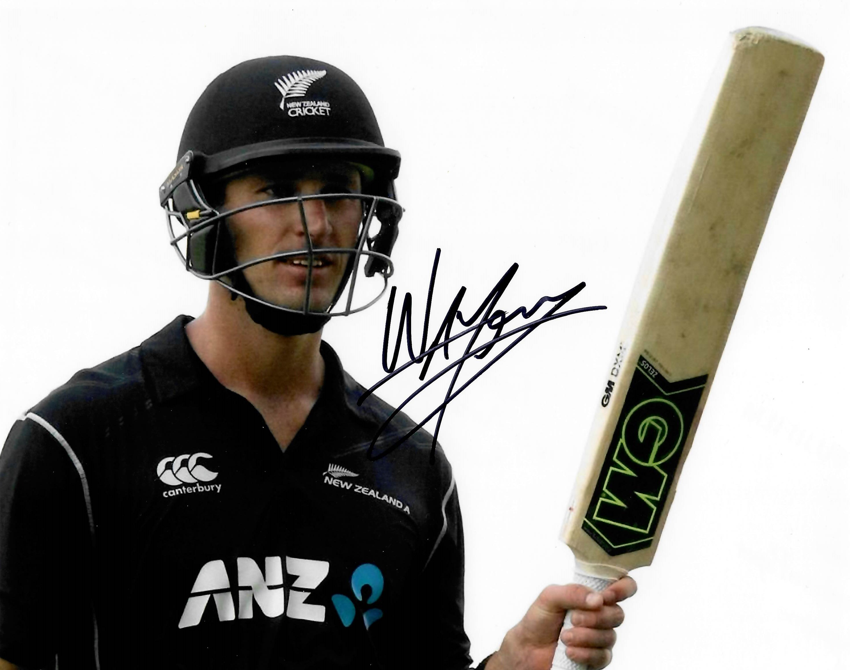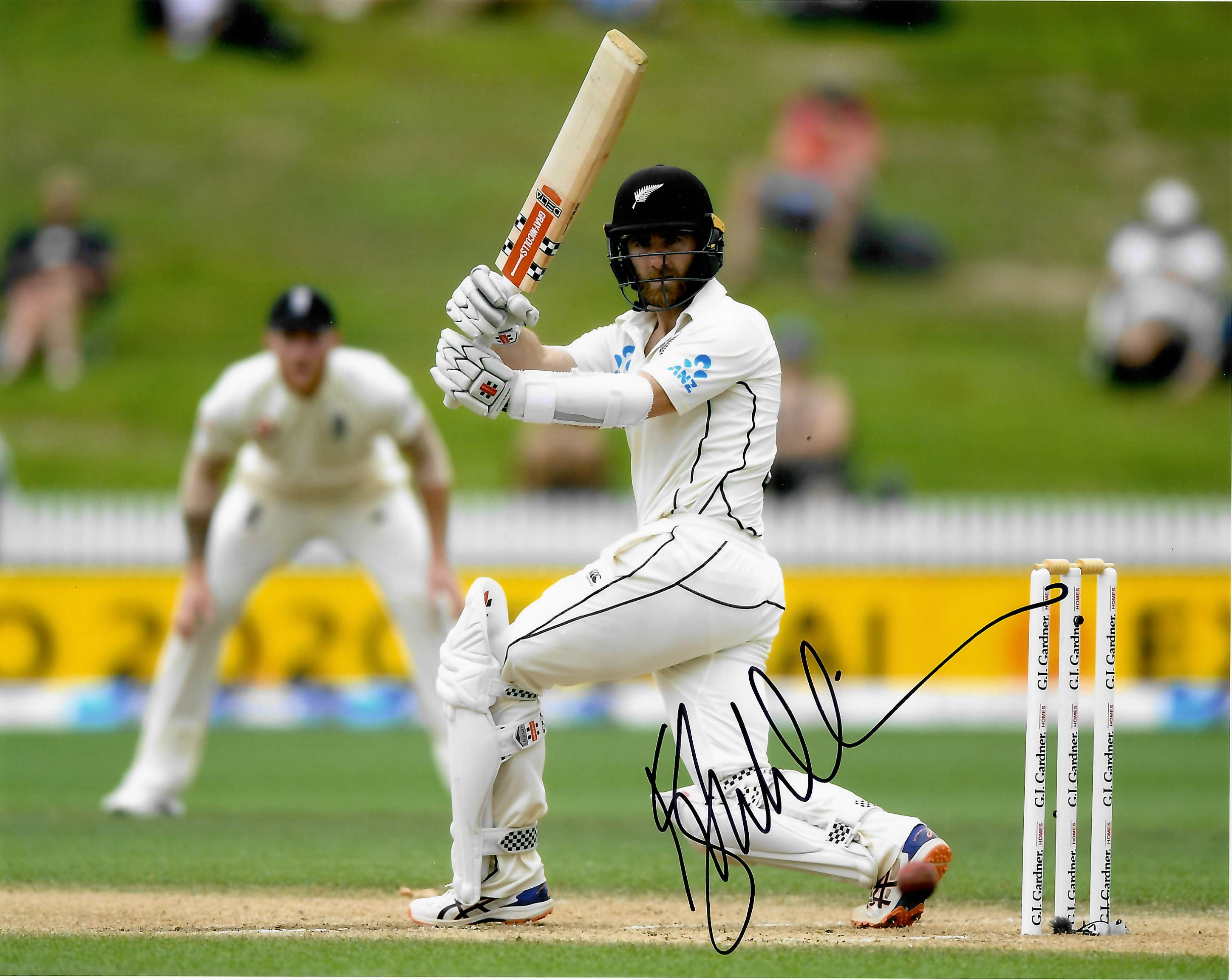 New Zealand 2022 Cricket team tour of UK, individually signed 8 by 10in. Cricket photographs, including Kane Williamson (Captain), Daryl Mitchell, Tom Blundell, Kyle Jamieson, Devon Conway, Tom Latham, Neil Wagner, Matt Henry, Blair Tickner, Henry Nicholls, Will Young, Ajaz Patel, Colin de Grandhomme. 13 signed photographs plus COA and exact photo proof. (14 items in total)
