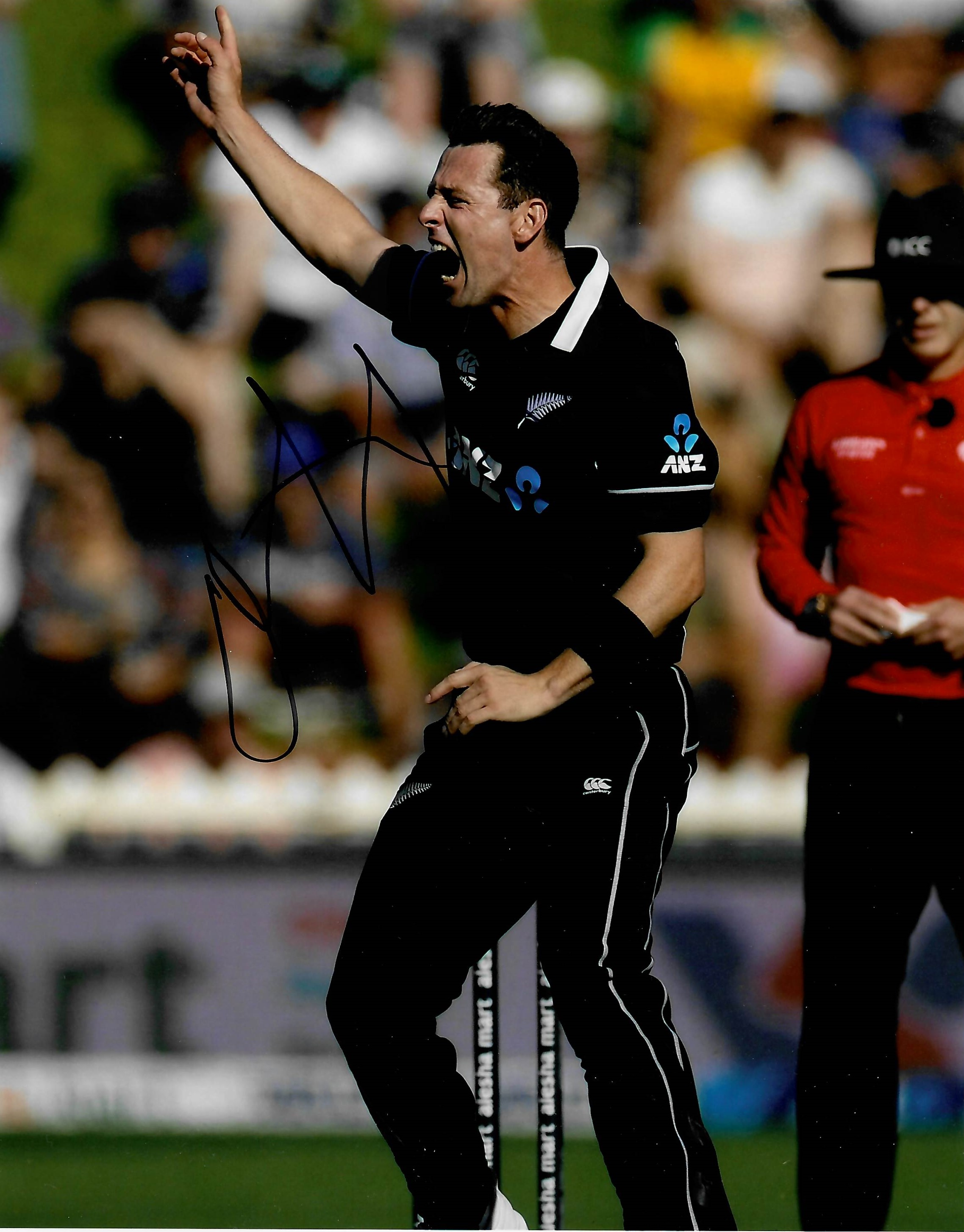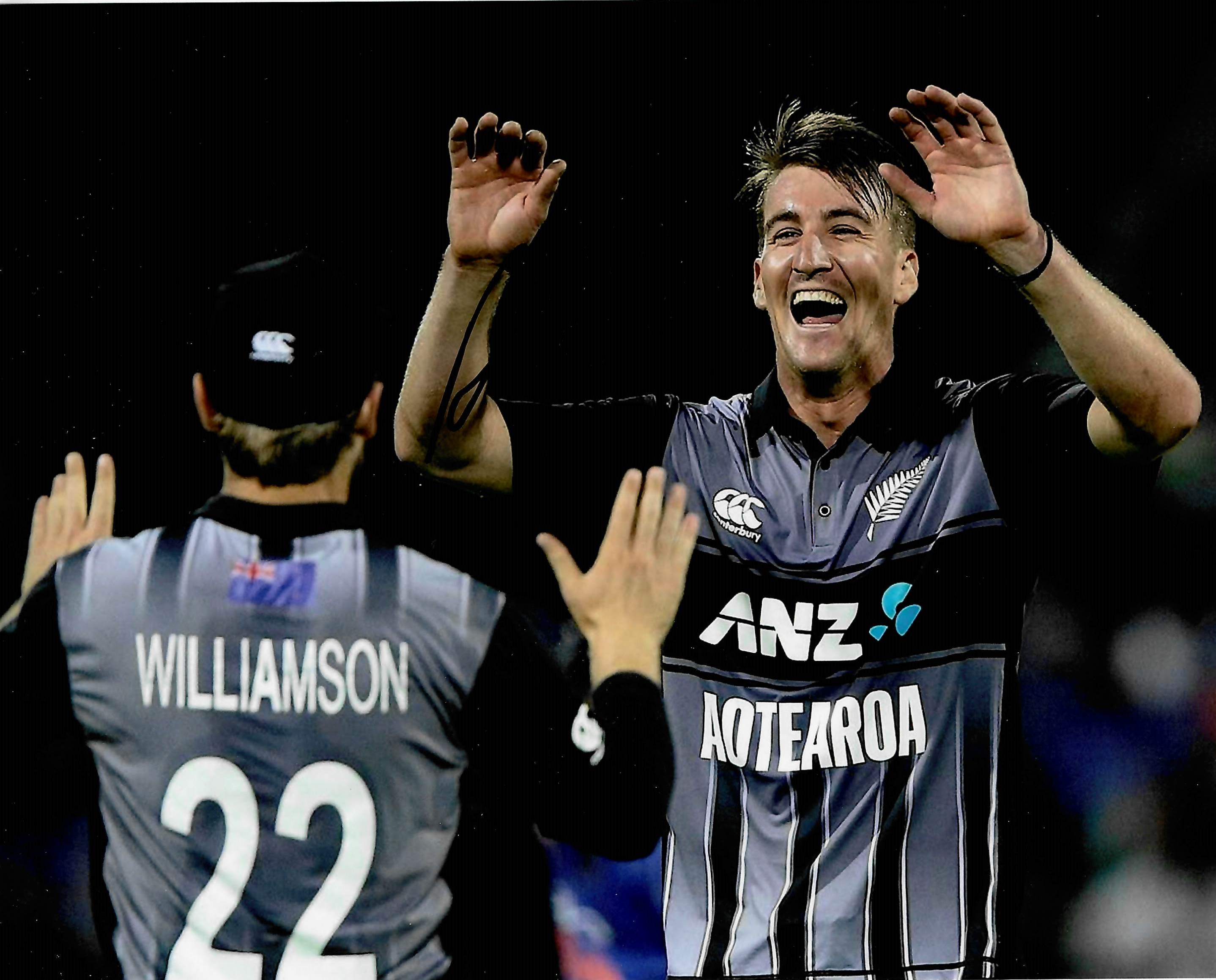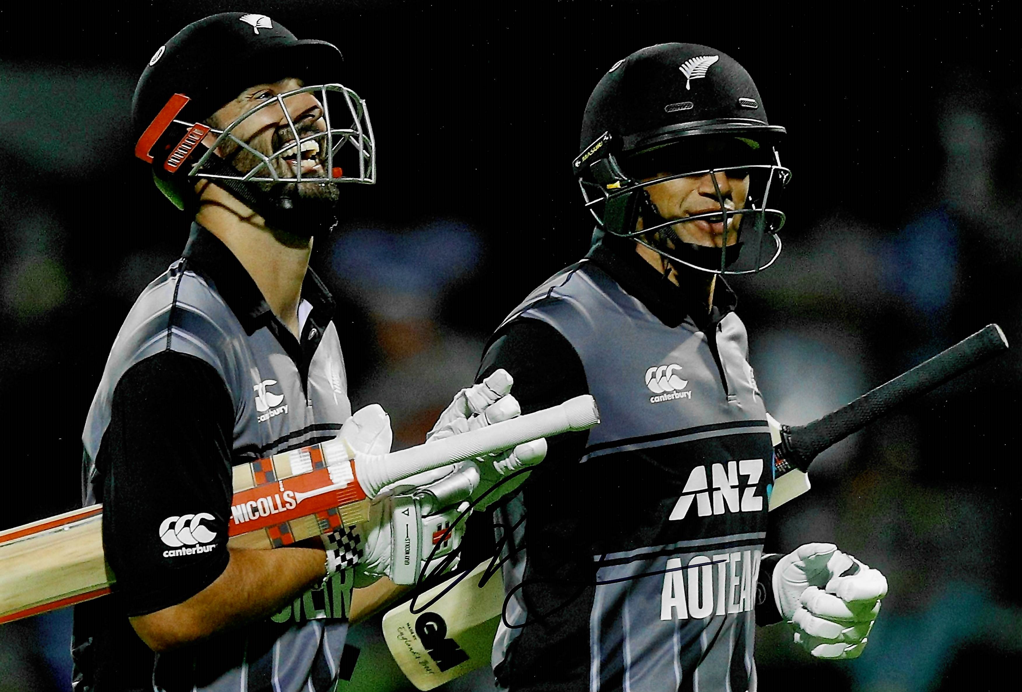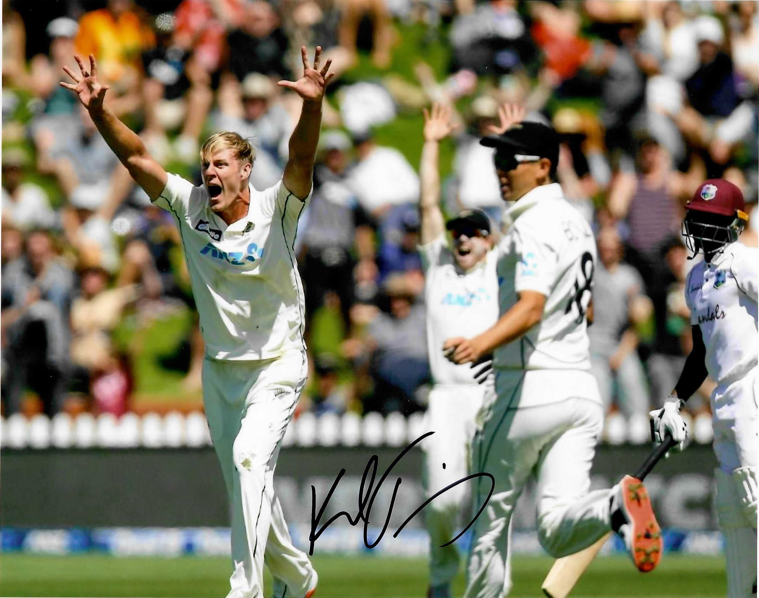New Zealand 2022 Cricket team tour of UK, individually signed 8 by 10in. Cricket photographs, including Kane Williamson (Captain), Daryl Mitchell, Tom Blundell, Kyle Jamieson, Devon Conway, Tom Latham, Neil Wagner, Matt Henry, Blair Tickner, Henry Nicholls, Will Young, Ajaz Patel, Colin de Grandhomme. 13 signed photographs plus COA and exact photo proof. (14 items in total)