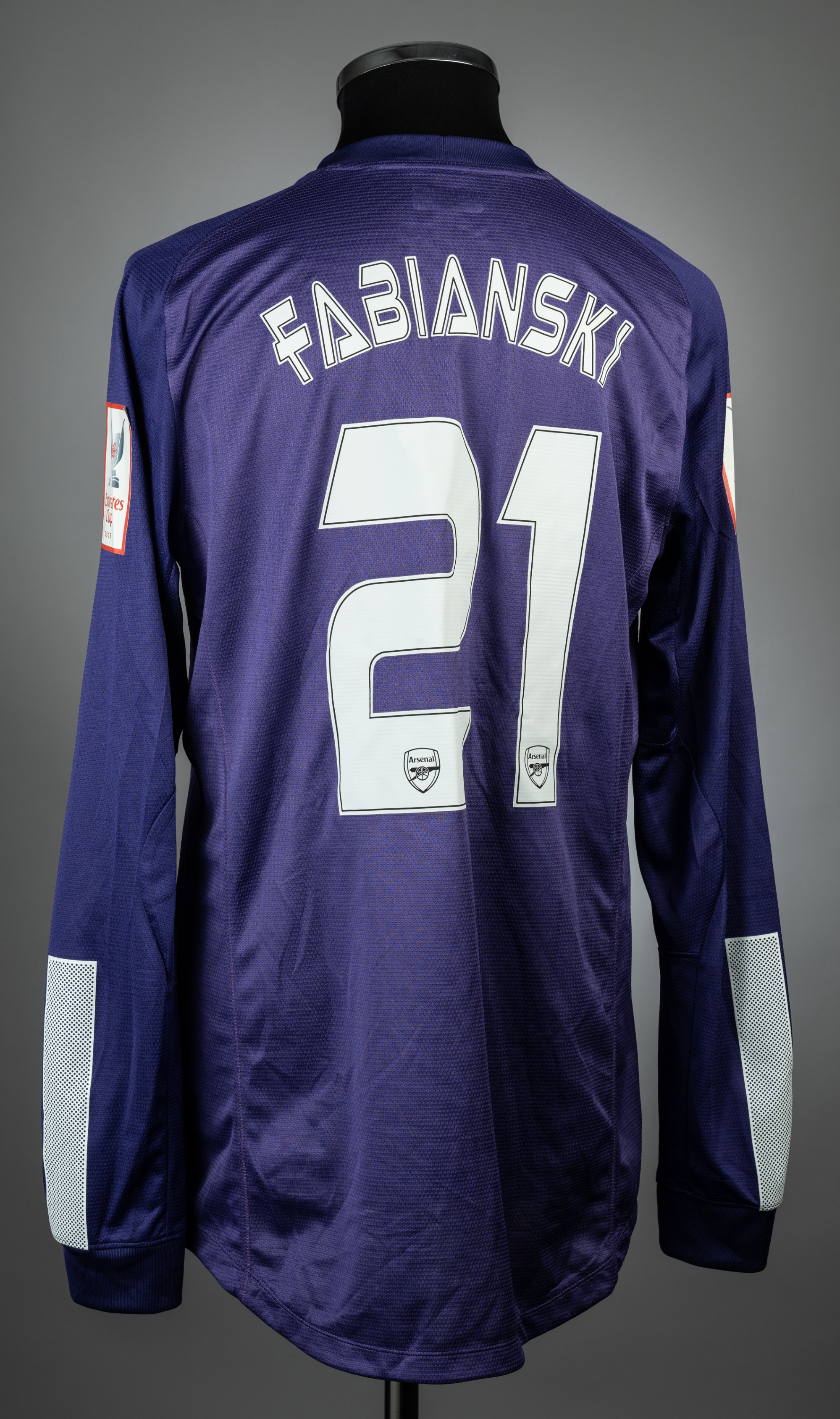 Lukasz Fabianski purple Arsenal Emirates Cup no.21 goalkeeping jersey v Napoli, played at Emirates Stadium, 3rd August 2013, match issue, Nike, long-sleeved with EMIRATES CUP 2013 sleeve badges, club crest and sponsor logo, reverse lettered FABIANSKI, size L Resulted in a 2-2 draw.