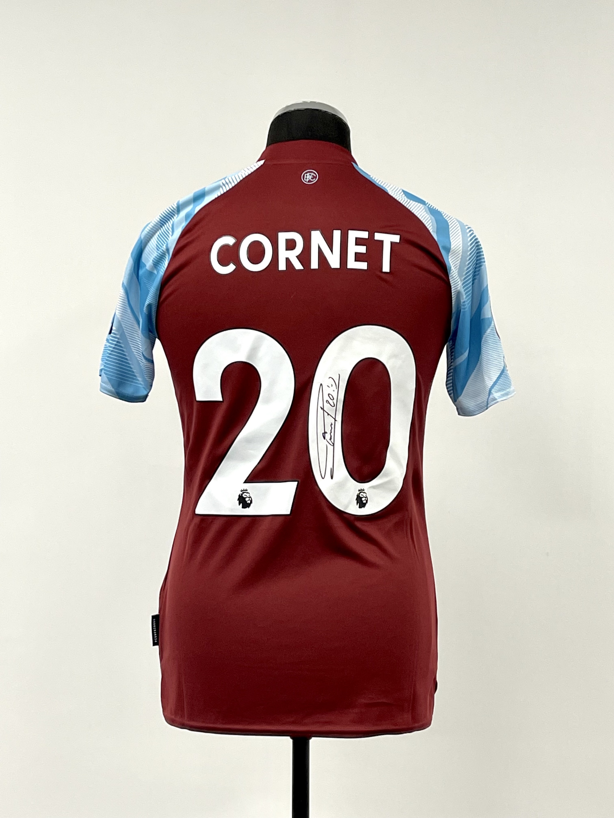 Maxwel Cornet signed claret and blue Burnley no.20 home jersey, season 2021-22, match-issue, Umbro, short-sleeved with PREMIER LEAGUE and NO ROOM FOR RACISM sleeve badges, club crest and sponsor logo, reverse lettered CORNET, signed in black marker pen on reverse, size S Complete with a Graham Budd Auctions Certificate of Authenticity. All profits will be donated to the Essex & Hertfordshire Air Ambulance. Provenance: Steve Dukes, Tottenham Hotspur kitman.