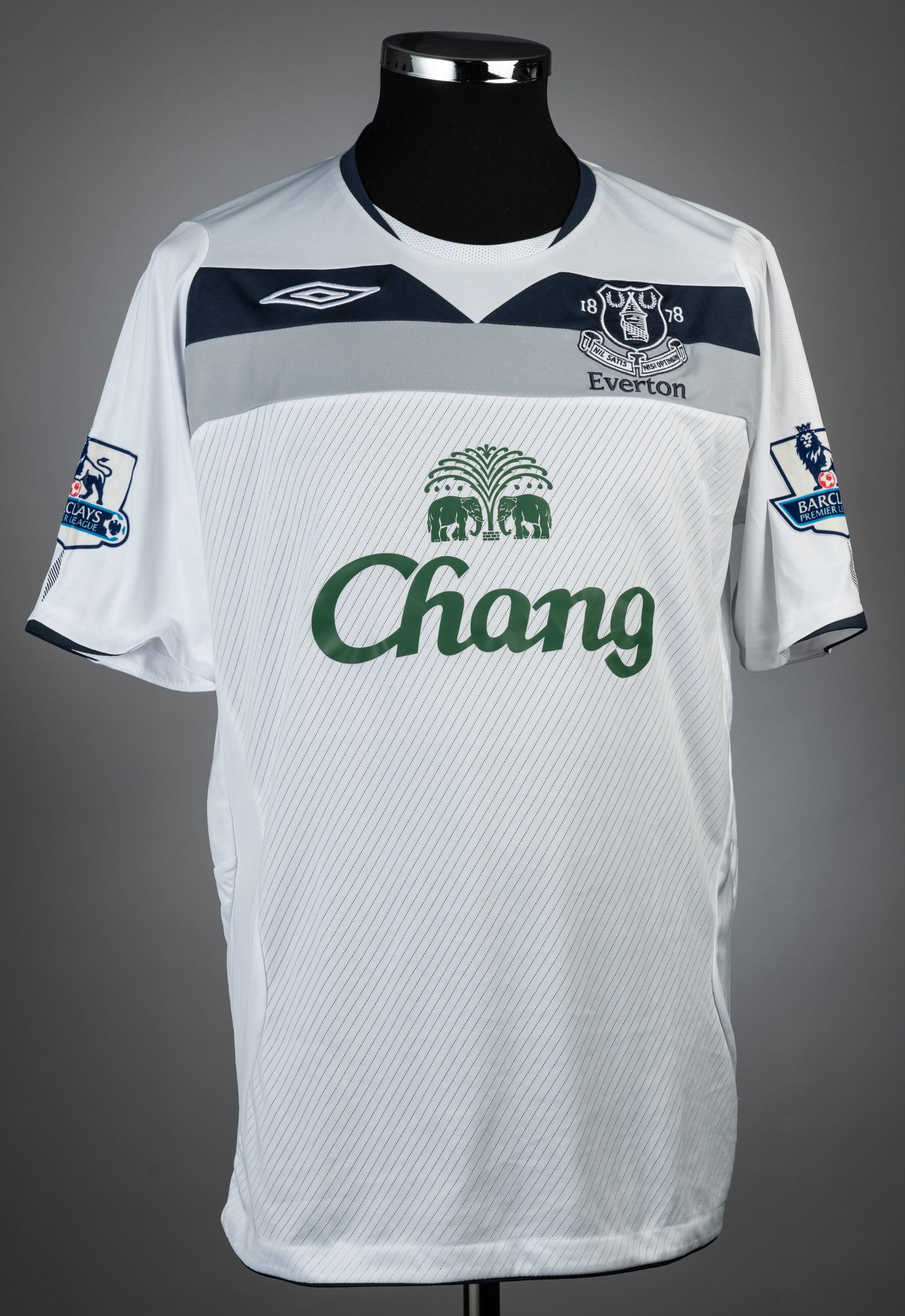Jose Baxter white, grey & navy Everton no.37 away jersey, season 2008-09, match-issue, Umbro, short-sleeved with BARCLAYS PREMIER LEAGUE sleeve badge