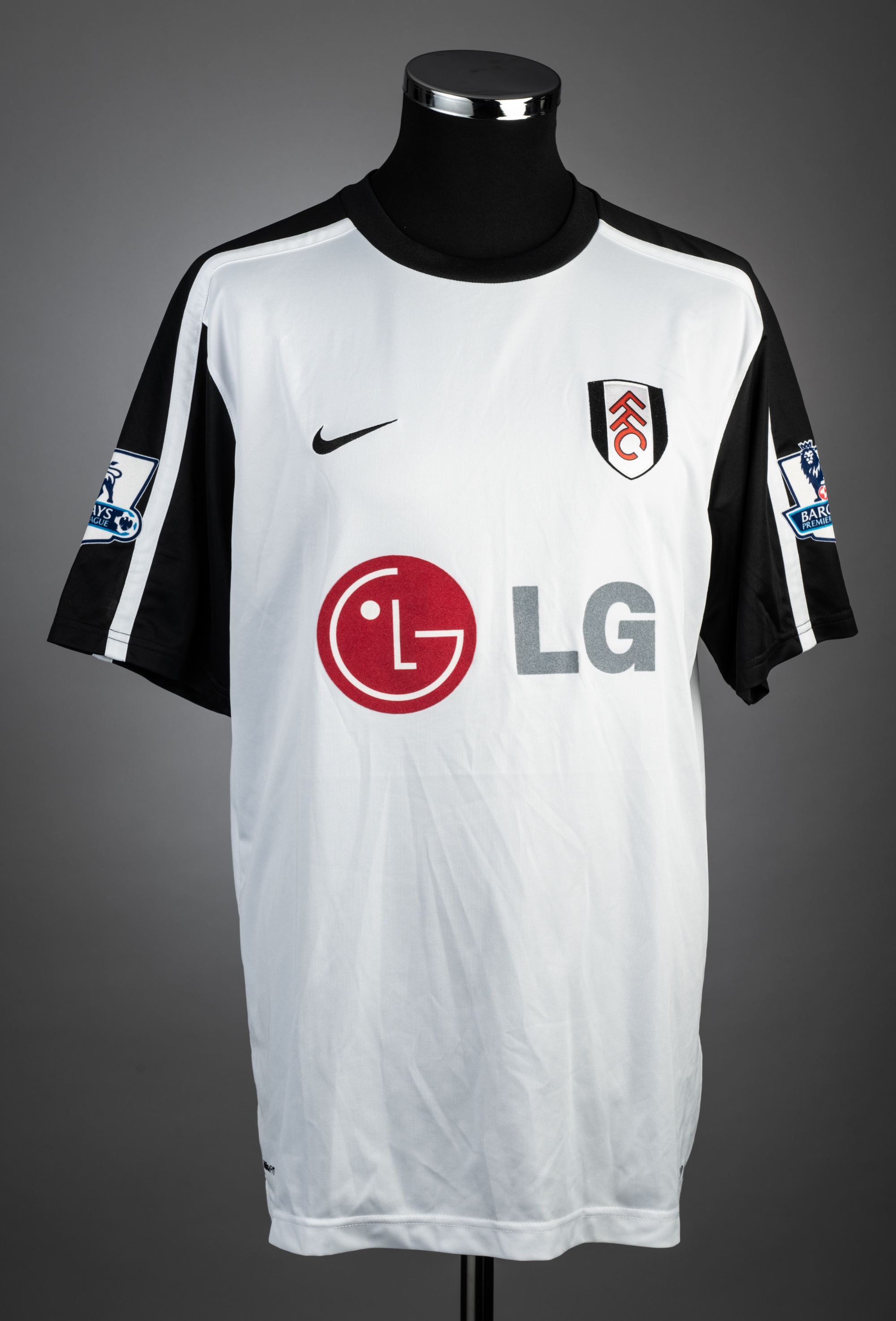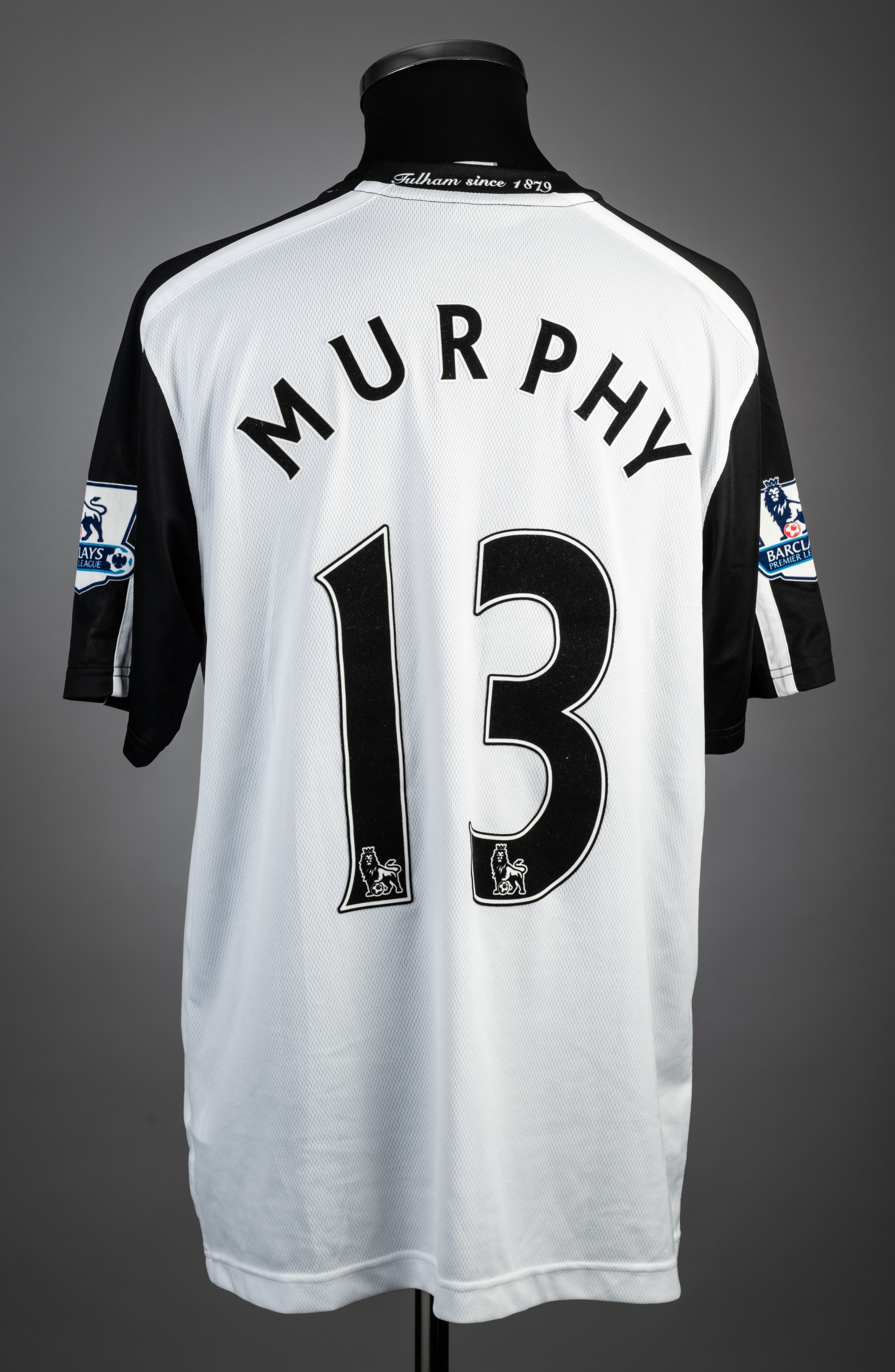 Danny Murphy white Fulham No.13 home jersey season 2009-10, Nike, size L, short-sleeves, Premier League badges, reverse lettered MURPHY; sold with a