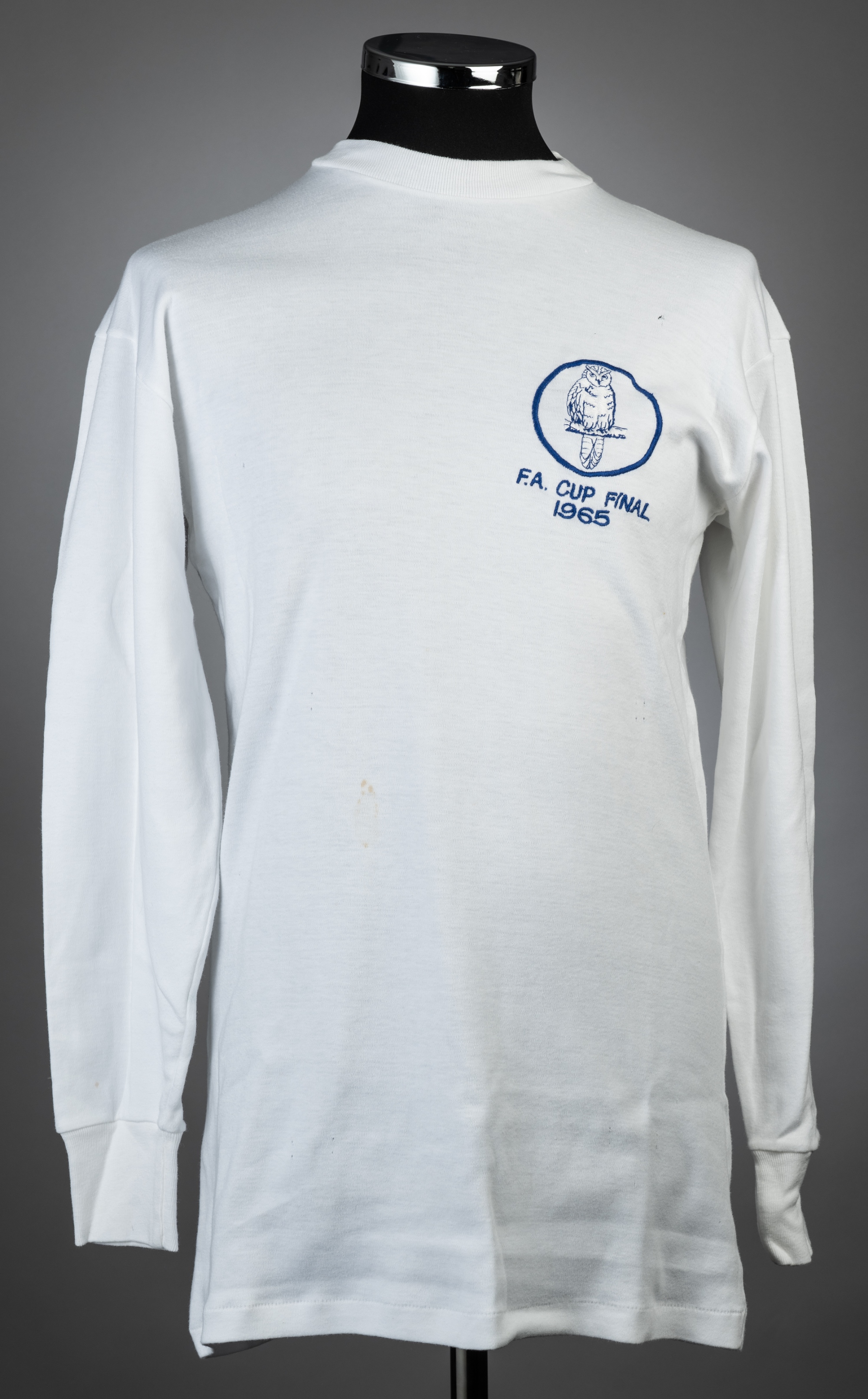 White Leeds United 1965 F.A. Cup Final un-numbered jersey, Umbro, long-sleeved with embroidered club crest and FA CUP FINAL 1965, reverse vacant, No