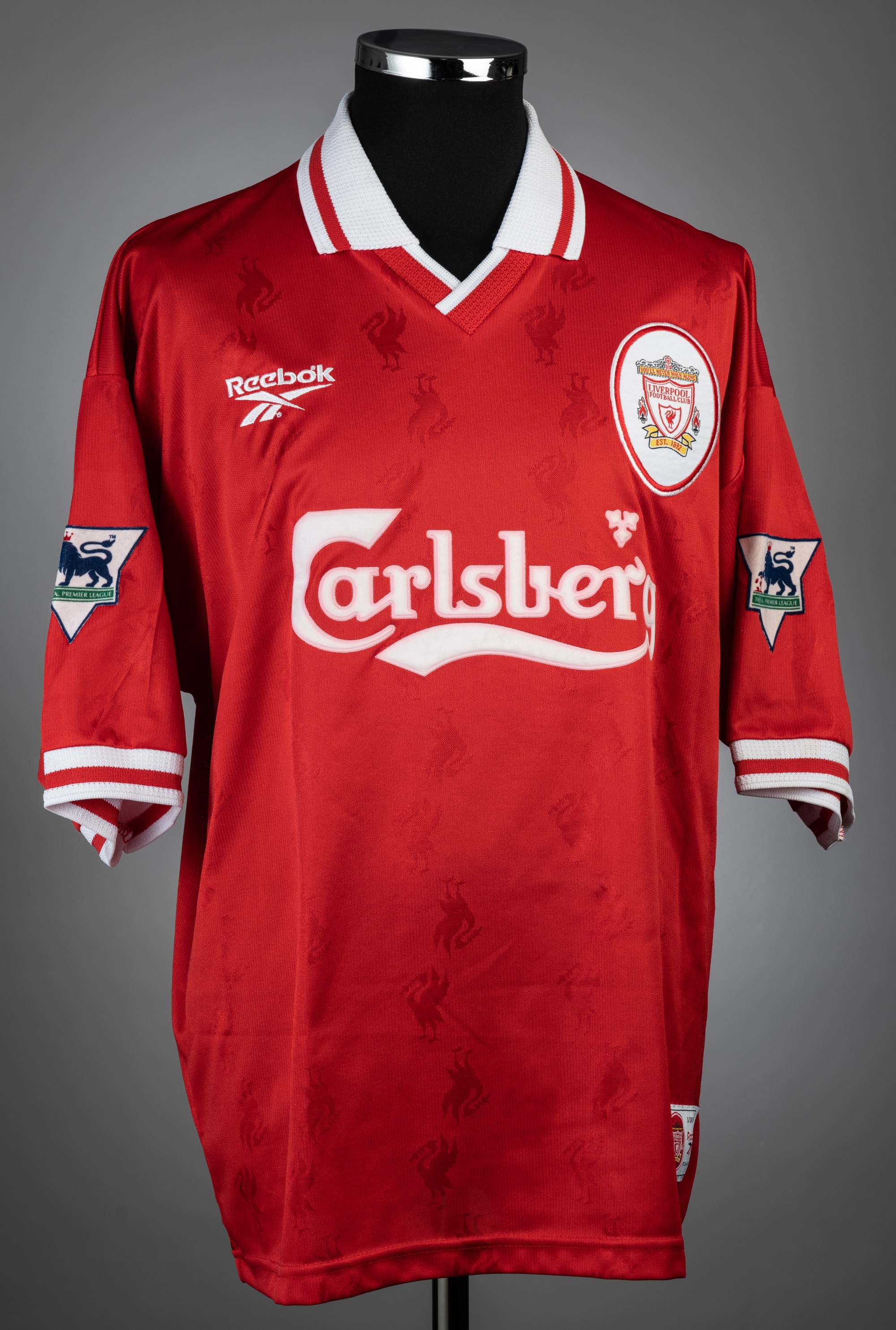 Michael Owen red & white Liverpool no.18 jersey v Glasgow Rangers in the Walter Smith Testimonial fixture played at Ibrox Stadium, 3rd March 1998, match-issue, Reebok, long-sleeved with THE FA PREMIER LEAGUE sleeve badges, club crest and sponsor logo, reverse lettered OWEN, size 46/48in., slight pink colour run into white lettering and numbering Rare no.18 jersey before Owen moving to no.10. Glasgow Rangers defeated Liverpool 1-0, with Michael Owen substituted at half time, replaced by Jamie Carragher.