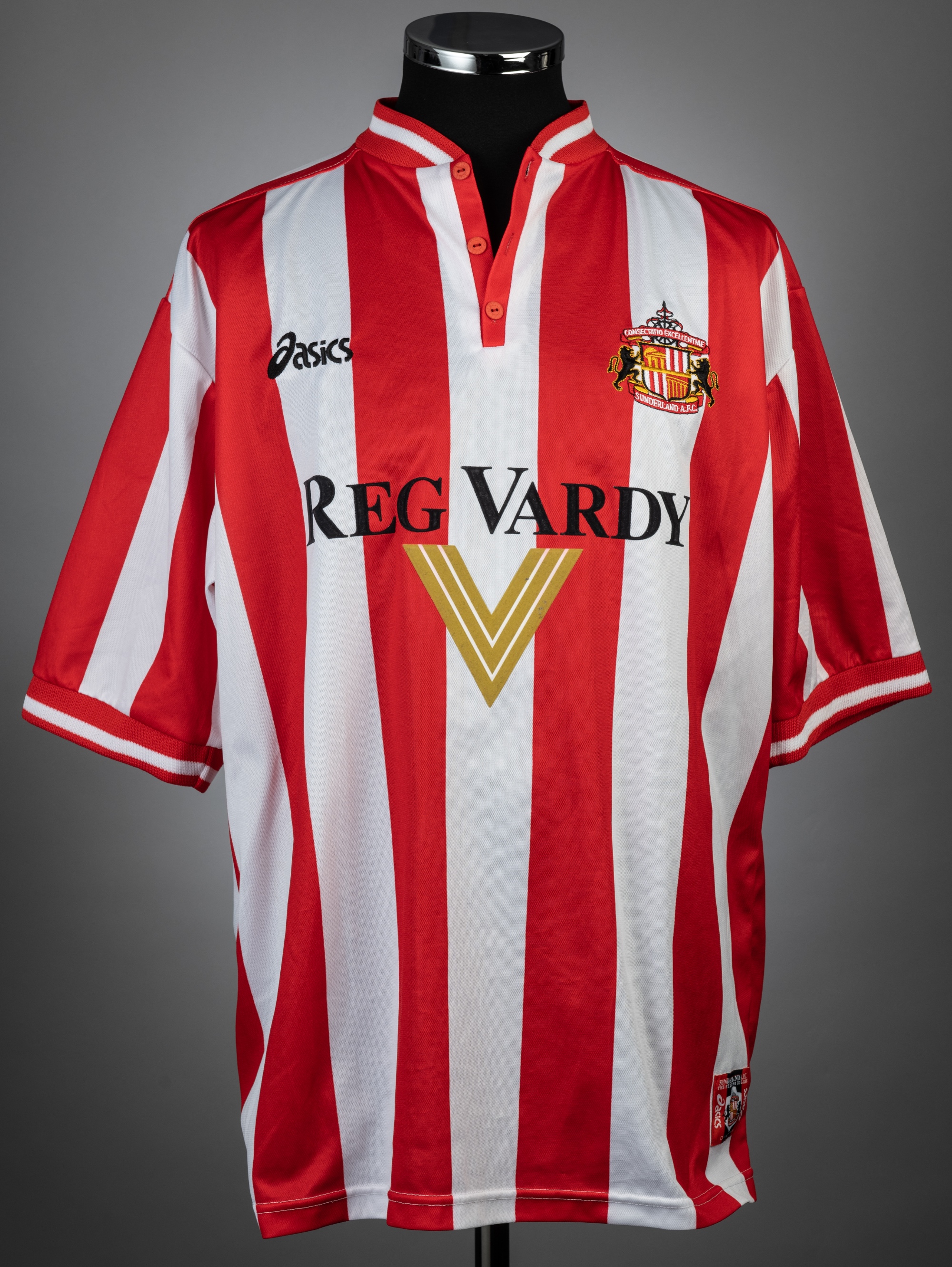 Red & white Sunderland no.15 jersey v Glasgow Rangers for the Ian Ferguson Testimonial, played at Ibrox Stadium, 21st July 1999, match-issue, Asics, short-sleeved with club crest and sponsor logo, reverse numbered 15, size XL Rangers defeated Sunderland 3-1.
