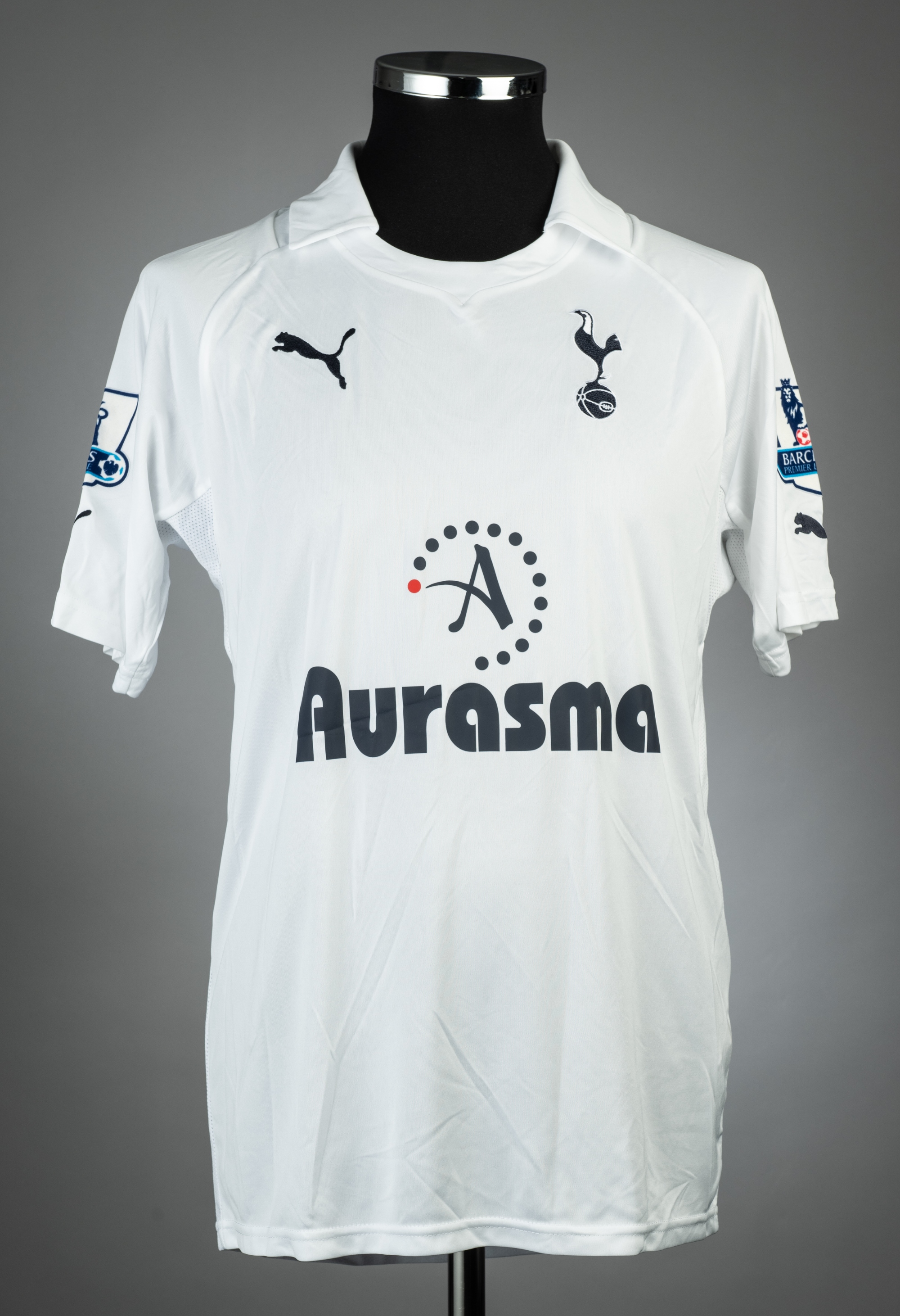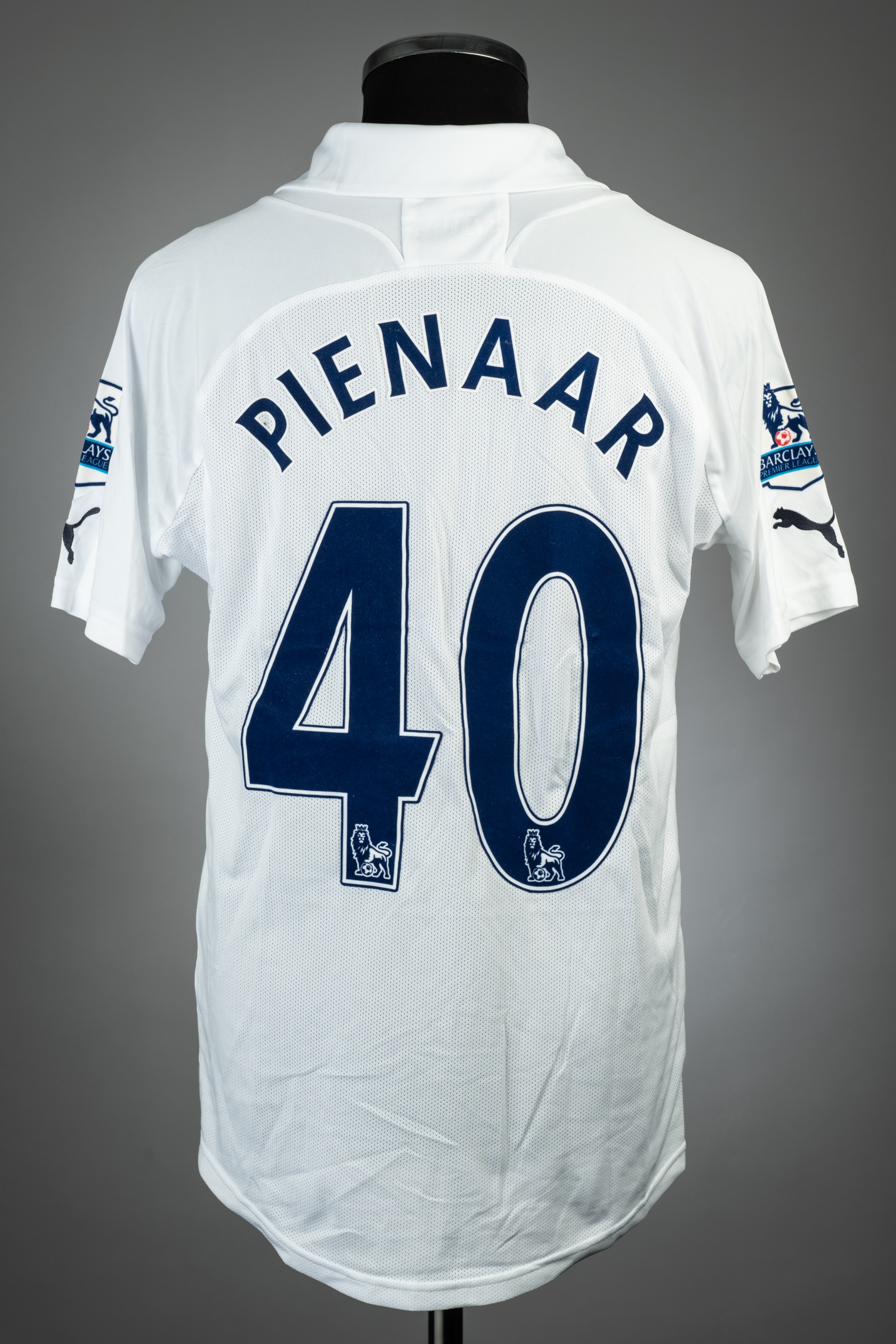 Steven Pienaar white Tottenham Hotspur no.40 jersey v Manchester City, played at Etihad Stadium, 22nd January 2012, Puma, short-sleeved with BARCLAYS PREMIER LEAGUE sleeve badges, club crest and sponsor logo, reverse lettered PIENAAR, size M Manchester City defeated Tottenham Hotspur 3-2, with Pienaar substituted on in the 88th minute replacing Aaron Lennon. Provenance: acquired from the Manchester City kitman