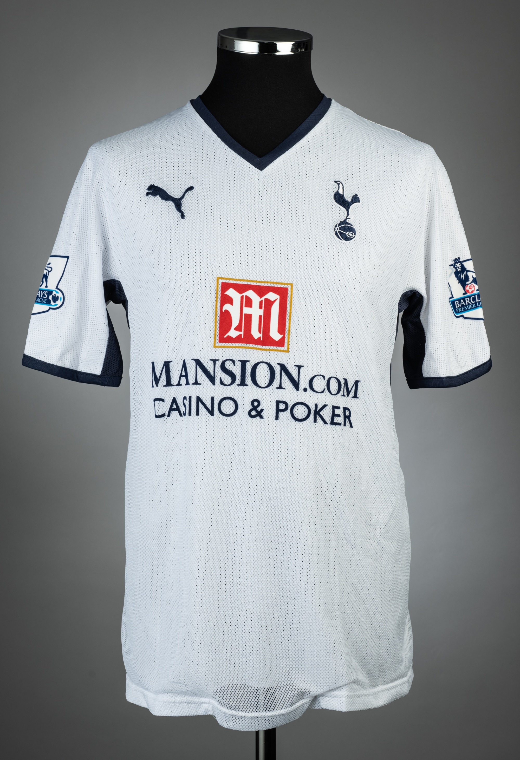 David Bentley white Tottenham Hotspur no.5 home jersey, season 2008-09, match issue, Puma, short-sleeved with BARCLAYS PREMIER LEAGUE sleeve badges,